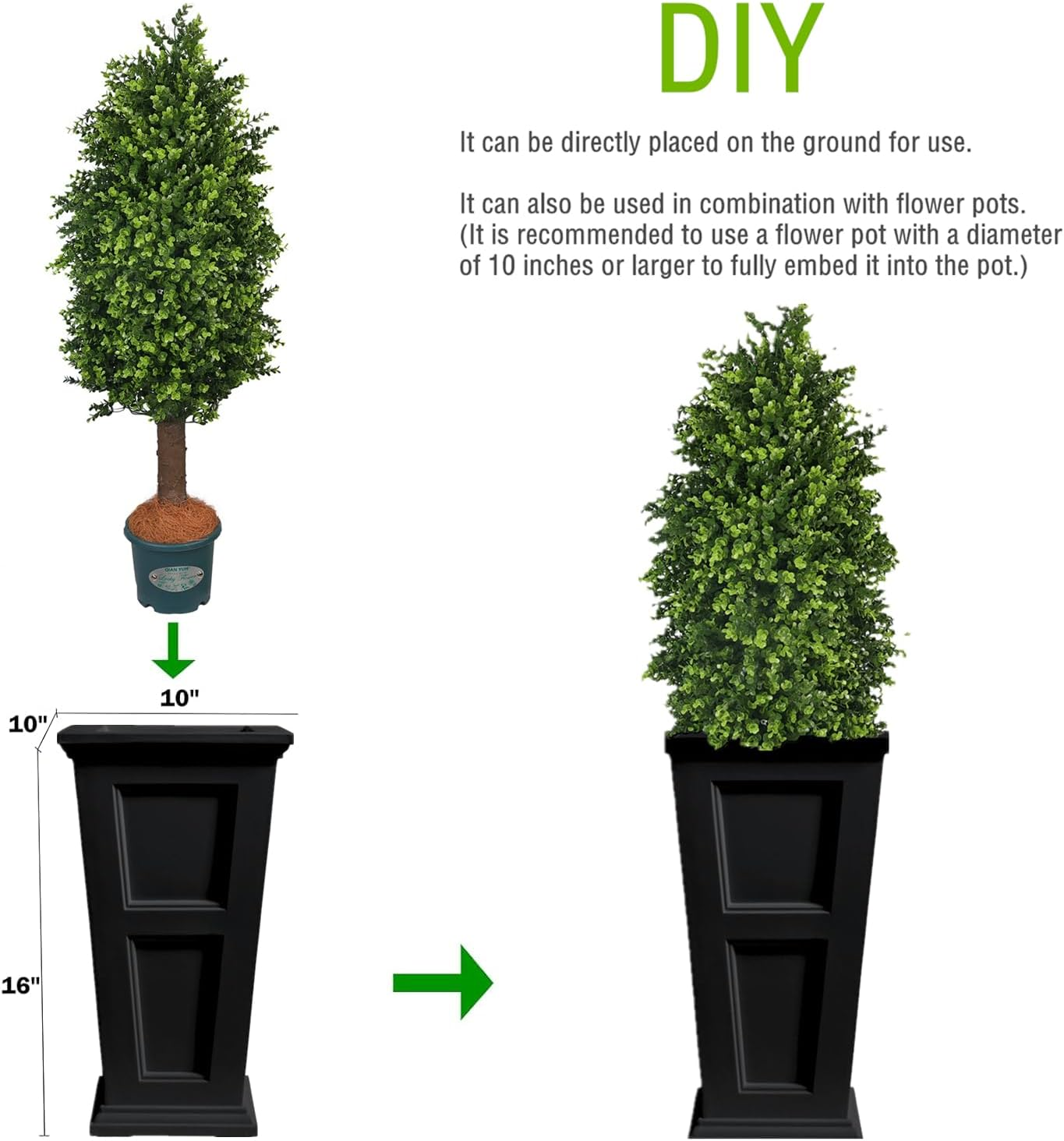 Store New Arrivals Add to Favorite View Feedback Contact Artificial Plants Outdoor-3Ft Fake Plants UV Resistant Topiary Boxwood Tree Potted for Front Porch Patio Farmhouse Winter Home Decor Description Item model number XT-778 Item Package Quantity 1 Number of Items 2 Built-in Light No Color Boxwood Tree-03 Included Components Container Material Plastic Country of Origin China Item Weight 14 Pounds Base Type Pot Recommended Uses For Product Outdoor Decoration Package Information Box Size 3FT Special Feature UV Resistant Product Dimensions 12"D x 12"W x 35"H Occasion Wedding & Engagement Plant or Animal Product Type Boxwood 【Designed for Outdoor Use】This faux boxwood plant is perfect for outdoor spaces, making it an ideal choice as an artificial topiary for outdoors. UV-resistant for up to 3 years, this artificial outdoor plant is perfect for gardens, front porches, and patios, offering a vibrant touch without fading or damage. 【Realistic and Lush Appearance】Standing at 3feet, these topiary trees artificial outdoor feature lush green foliage made from high-quality boxwood. The realistic design adds a vibrant and natural look to any environment. Includes a sturdy pot for stability, unlike other fragile tree pots that easily tip over. 【Versatile for Any Occasion】These artificial topiary trees outdoor are perfect for customization. Adorn them with ribbons for weddings, bells for Christmas, or flowers for housewarming parties. Whether it's Christmas décor or winter décor, you can personalize the look to match any occasion. 【No Maintenance Required】These porch trees set of 2 require no watering, trimming, or upkeep. Simply place them in your desired spot, and they will stay beautiful throughout the year. Perfect for those who want a low-maintenance yet elegant touch for their home, or as a thoughtful housewarming gift. 【Versatile Application 】Whether indoors or outdoors, these artificial plants outdoor are perfect for living rooms, porches, offices, cafes, restaurants, hotels, or beauty salons. Their elegant appearance fits effortlessly into any setting, bringing a touch of nature to your home or business. Enhance your space with our UV-resistant artificial topiary trees. Standing 3feet tall, these faux boxwood plants are perfect for both indoor and outdoor use, adding a lush, vibrant touch to any setting. Ideal for gardens, front porches, or offices, they come with a sturdy pot to prevent tipping. These low-maintenance plants require no watering or upkeep, making them perfect for year-round décor. Customize them with ribbons, bells, or stars for special occasions like Christmas or weddings. A perfect choice for homes or businesses looking for a natural, no-hassle touch. ABOUT US We are a family-owned business based out of Miami, proudly selling on eBay since 2015. Our mission is to provide high-quality products at a great value, ensuring customer satisfaction with every purchase. As a small business, we take pride in offering personalized service, fast shipping, and a seamless shopping experience. Thank you for supporting our store—we appreciate your business and look forward to serving you! SHIPPING We ship only to the Continental 48 US States. All Shipping is FREE! Be known, we do not ship to Alaska, Hawaii, APO/FPO, PO Boxes, or any US Protectorates. Your order will be processed within the allotted time frame and will never exceed 5 Days. Most items ship out in 2 - 5 Business Days after payment is received. RETURNS We offer a 30-Day Return Policy on items which you are not completely satisfied with. You have the option for a full-refund or an exchange of the item. PAYMENT We accept PayPal. CONTACT US This page content is yet to come Please ad us to your favorite seller and visit again later Thank You CUSTOMER SATISFACTION We try our very best to make sure every customer is completely satisfied. If there's a problem, message us! We're happy to help THANK YOU FOR YOUR BUSINESS!!