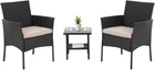 『Excellent Stability & Durability』: This front porch furniture is equipped with non-slip feet pads to protect your floor and make the balcony furniture more stable. Thanks to bottom of the chair has Ten-shaped brackets, the whole chair has a large load-bearing capacity. Small patio furniture set is made of excellent PE rattan and strong steel frame, which are not easily deformed or corroded thus the furniture set can be used for long time. 『Comfortable & Convenient』: Soft sponge-filled seats give you extra comfort, Conversation Sets gives you a excellent seating experienceand,the covers can be removed for easy clean and maintain. Toughened glass is strong and light, which can be swabbed or washed with water. 『Ergonomic Outdoor Chair』: This outdoor patio chairs are ergonomically balanced with backs for extra lumbar support, and comes with two wicker chairs and a coffee table. The curve of armrest on the both side, comfortable and skin-friendly support, fits your body line. You can put some drinks or snacks on the table, and then sit down to enjoy the cozy life. 『Best for Outdoor Living』: The all-weather wicker with a nature look is suitable for using in all seasons. The combination of two chairs and a table is perfect for close conversations. Premium lightweight rattan makes it easy to move this outdoor seating from patio to lawn or from backyard to garden. 『EASY ASSEMBLY』: This Outdoor Furniture Set Comes With All Hardware & Necessary Tools. Follow The Instruction, You Can Easily And Quickly Assemble The Bistro Set.NOTE: When you try to install the patio bistro set, try to line the hole together in all side, do not over tight one hole, then try to tight it slowly in each side What We Offer: A new 3 pieces patio furniture sets, Complete installation tools, An installation instruction, Our worry-free 6-month after sale service and Friendly customer. Product Description The table in the patio set is made of high-quality tempered glass,Our Outdoor Patio Wicker Sets all kinds of outdoors. Style and settings, convenient storage, save space.This patio set is designed to be modern and stylish with a low-maintenance feature. Our rattan set includes two comfortable chairs and a table with tempered glass. This set is elegant and very well matched. It is suitable for balcony, garden, teahouse, living room, etc. Product Specifiacion Package included: 1 x Tempered Glass Top Coffee Table 2 x Rattan Chair 2 x Thick Cushion Rattan Chair Dimension: L20"*W18.89"*H32.28" Table Dimension: L15.75"*W15.75"*H16.93" Table with removable tempered glass adds allows you to places drinks,meals,or decorative items on top. The 2-inch seat cushion brings you a more comfortable experience, and the zipper design makes regular cleaning easier. Strong non-slip table legs and chair legs can protect the floor and maintain stability Patio chairs 3 piece set is made of excellent PE rattan and strong steel frame, which are not easily deformed or corroded thus the furniture set can be used for long time. Quality manufacturing, unique craftsmanship, cross-shaped table and chair frames are stronger The chair is not only lightweight, but also has a super load-bearing capacity of 200 pounds.