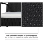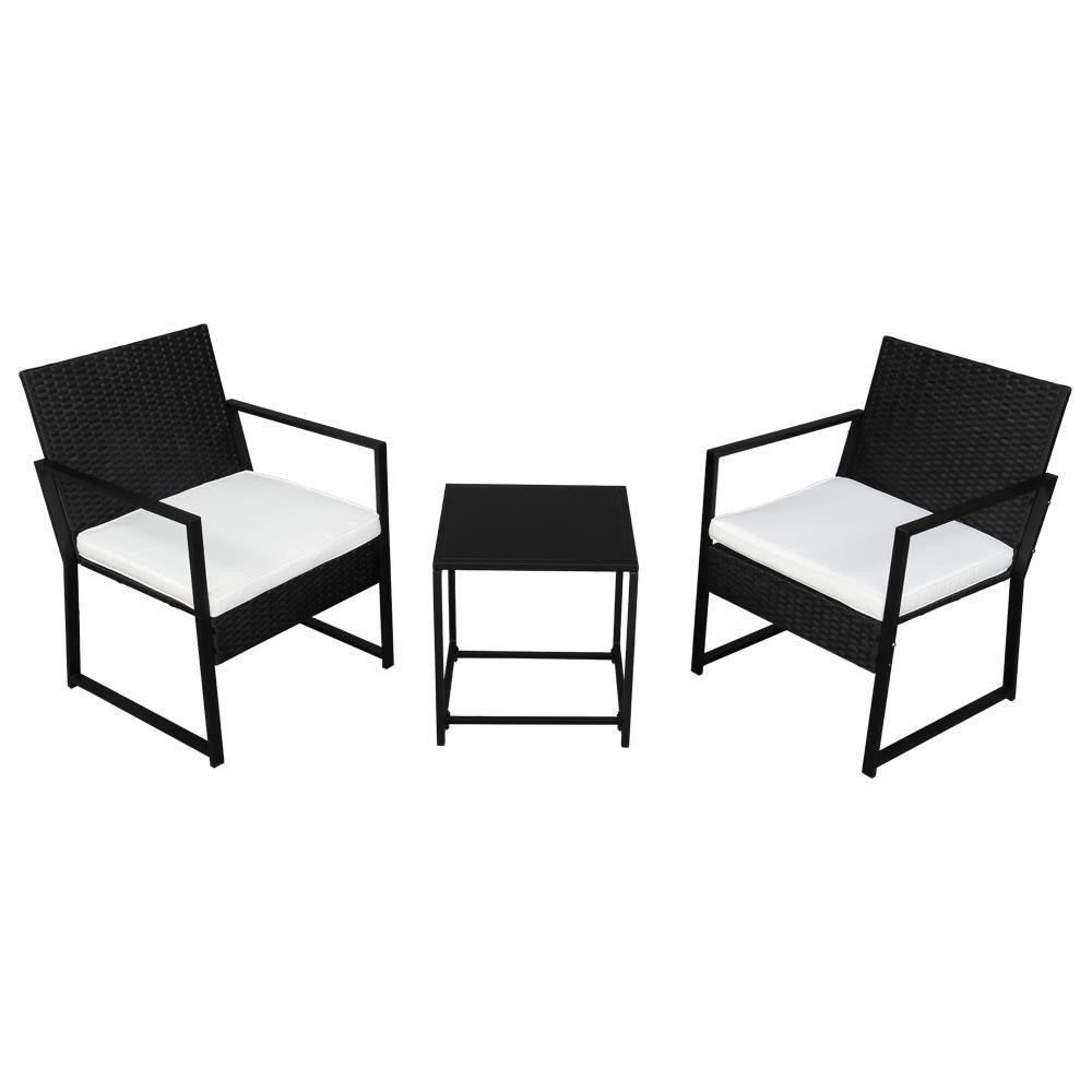 Backrest Width: 52.5cm Tea Table: (17.72 x 17.72 x 18.9)" (L x W x H) Weight: 33.07lbs / 15kg Brand: Unbranded Type: Bistro Set Glass Size: (16.22 x 16.22 x 0.2)" (L x W x H) Backrest Height: 45cm Color: Black and White UPC: Does not apply Material: Iron, Plastic, Rattan Hand Rest Length: 56cm Thickness Of Seat Cushion: 5cm gtin13: Does not apply Seat Size: (20.67 x 19.09 x 14.96)"(L x W x H) Hand Rest Height: 61.5cm Overall Size: (23.33 x 24.41 x 31.5)"(L x W x H)