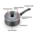 Ideal for family cooks stressed for time. Comfort range combines a simple style and superior performance features to help you cook all of your recipes with ease. The riveted, soft-touch handle is ergonomically designed for comfort and safety. The hard Titanium Non-stick is reinforced with Titanium particles for the ultimate durability and longest-lasting performance. Proper preheating to seal in food's flavor is a breeze with the Thermo-Spot, which clearly indicates when the pan has reached the optimal temperature to begin cooking. Dishwasher safe for easy cleanup and oven safe up to 350¬? F for added convenience, the Comfort range is ideal for everyday stressed-out family cooks looking for convenience and fast prep. Superior nonstick interior coating reinforced with titanium for easy cooking and quick cleanup Ergonomically designed handles for comfort Measurement markings for added convenience Dishwasher safe for easy cleanup
