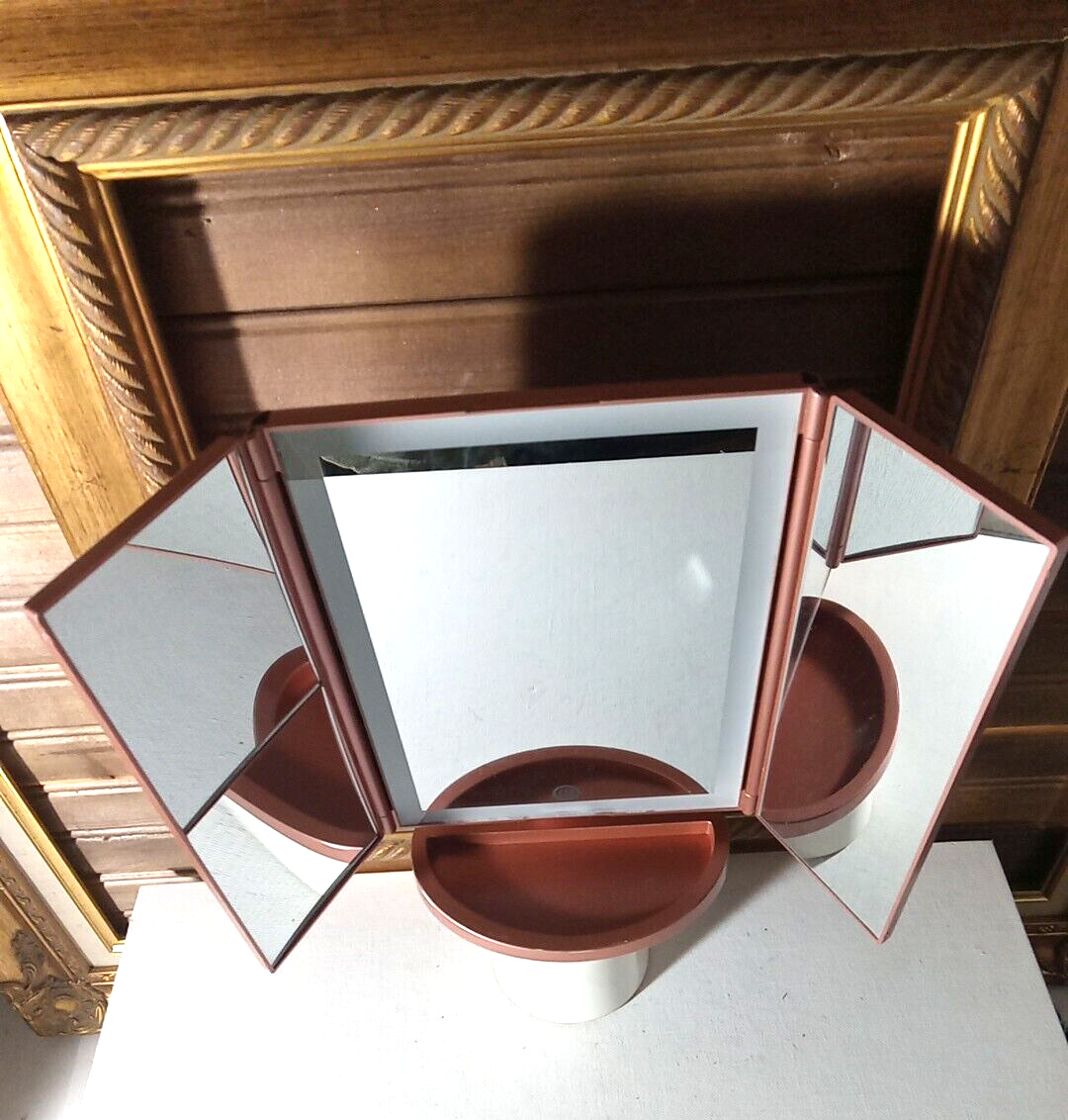 Folding 3 Way Magnifying Lighted Makeup Mirror. Some blemishes see photos. Works good tested.