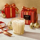 NEST New York’s expertly crafted Holiday Scented 3-Wick Candle fills your home with a captivating scent that brings elegance to everyday living. This luxury decorative candle is housed in a custom glass vessel with a festive gold pattern designed to complement any holiday décor. The fragrance features pomegranate, mandarin orange, pine, cloves, and cinnamon with a hint of vanilla and amber, instantly providing the aroma of a sparkling holiday season. This large, three-wick scented candle has a 75–100 hour burn time, measures 5 inches wide by 4.75 inches high, and is made with a proprietary wax designed to burn cleanly and fill your space with fragrance. As part of an ongoing commitment to cruelty-free practices, NEST New York has been certified by PETA, a leading organization that certifies brands that operate without animal testing. NEST New York is also moving toward a more sustainable future with recyclable cartons made from sustainably sourced materials. NEST New York’s fragranced home, perfume, and body care collections transform the everyday by artfully blending notes of the familiar, the exotic, and the unexpected for a fragrance experience like no other. Let NEST New York scent your world. LUXURY GLASS CANDLE: 21.2-ounce three-wick decorative scented candle ideal for home relaxation and entertaining WARM AND FESTIVE: An inviting blend of pomegranate, mandarin orange, pine, cloves, and cinnamon with a hint of vanilla and amber LONG-LASTING ELEGANCE: Candles crafted with proprietary, premium wax formulated to burn cleanly and evenly for 75–100 hours CRUELTY FREE: These richly scented candles are vegan and made without animal testing NEST NEW YORK: Where mood is elevated and scent is celebrated