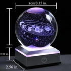 Dazzling 3D Solar System Model: This crystal ball display showcases the solar system with distinct and stereoscopic planets meticulously engraved using 3D laser technology onto premium K9 crystal glass for transparency and shine that won't fade. Illuminating Light Show: The solar system model comes alive with a built-in LED light base offering 6 vibrant lighting modes that cycle through colors like white, red, blue, and green, creating a mesmerizing visual experience. Versatile Design: With its elegant style, this crystal sphere doubles as a captivating home decor piece and an educational astronomy gift, perfect for science enthusiasts, teachers, or anyone fascinated by the cosmos. Ready to Gift: Packaged in a beautiful gift box with a USB cable and LED light base included, this solar system model makes an impressive present for birthdays, holidays, graduations, and other special occasions. Dimensions: 3.14"D x 3.14"W x 3.14"H