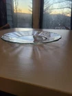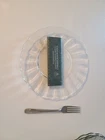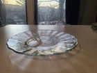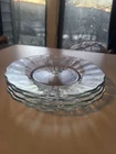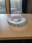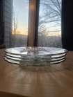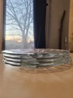 Scalloped edges that you can feel and see the effects of in the shadow and the light. This just makes it all the more magical. Four pretty glass dessert plates, perfect for a small dinner or plates for charcuterie boards at parties. But I say, use them all the time. No sense in wasting pretty things! 8 5/8 inches (22cm) in diameter.