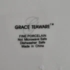 Add a touch of elegance to your dining table with this set of four Grace's Teaware dinner plates. The plates are crafted from high-quality porcelain in a beautiful sage green color with a shiny finish. Each plate measures 10.5 inches in diameter and features a scalloped edge design with gold accents that add a touch of luxury to your dining experience. These plates are perfect for all occasions, whether you're hosting a formal dinner party or a casual family gathering. They are dishwasher safe, making them easy to clean and maintain. The set includes four plates, each with the brand's signature design. Bring a touch of contemporary style to your table with these Grace's Teaware plates.
