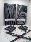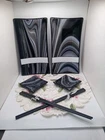 Enhance your sushi experience with this exquisite four-piece plate set. Each plate features a modern and contemporary fusion design with a black and white color scheme that complements any occasion. The rectangular shape of the plates provides a sleek and elegant look that adds to the overall dining experience. Crafted from high-quality glass material, these original sushi plates come with chopsticks and are perfect for all occasions. Whether you're hosting a dinner party or enjoying a quiet sushi night at home, this set is sure to impress. Add a touch of sophistication to your dining table with this stunning sushi plate set. Please see my other auctions for my other thrift store finds.
