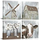 30 Days Return Policy Fast Delivery Trusted seller 4 Piece Farmhouse Canvas Wall Art Rustic Cow Dutch Windmill Cotton Flower Picture Artwork Modern Countryside Printed Painting for Living Room Kitchen Decor Framed Ready to Hang 12x12 Inch Product Description SIZE:Each canvas panel is 12"x12"(30cmx30cm),total 4 panels. PREMIUM MATERIAL:Waterproof premium quality high definition canvas with fade resistant. EASY TO HANG:Each panel of canvas prints already stretched on solid wooden frames,gallery wrapped,with hooks,nails and mini level accessories, ready to hang. PERFECT CANVAS ART: Our wall printed with vivid color is a good idea for home interior decor ,such as living room, bedroom, kitchen, bathroom, guest room, office, and others.Also,be ideal gifts for housewarming. The actual color maybe slightly different because of different computers,any problems,please contact us,we value you highly. Shipping Returns Payment Shipping Shipping is FREE to all addresses other than APO/PO boxes in the lower 48 states. All our stock ships from US-based warehouses. Shipped via USPS or UPS (depending on location and package weight) Unless stated otherwise, all orders will ship within 24-72 hours of your payment being processed. Check our feedback to see the great reviews of FAST shipping we offer. Returns As our valued customer, we will do our best to make sure the product you receive arrives to you on time and as expected. If you are not satisfied with your purchase, please contact us within 30 days of receiving your order to process a return. Payment We currently accept payment via eBay managed payments only. Once payment is cleared, we will dispatch your shipment within 1-3 business days. Please refer to the "Shipping" tab for more information regarding shipping speed to your destination.