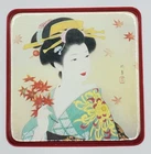 4 piece set Geisha Coasters Vinyl covered 3.5"x3.5"