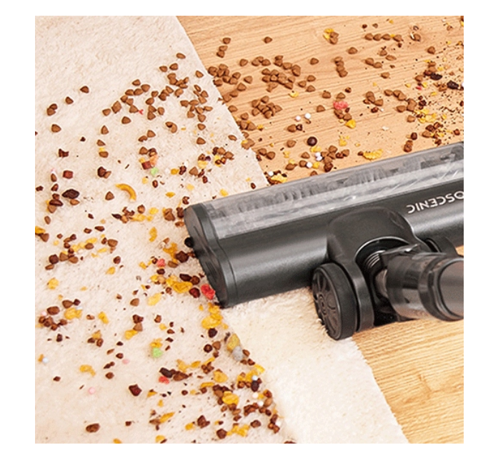 Cordless vacuum cleaner, 2 in 1, mopping engine power: 400 W suction power: up to 35,000 Pa noise level up to 78 dB battery capacity: 2000 mAh 3 operating modes dust container capacity: 0.65 l working time on full charge: up to 50 minutes working time in maximum mode: up to 5 minutes time required for full charging: approx. 3 hours filtration system: 5-stage LED touch screen Main brush LEDs Removable mopping head 2 in 1. Vacuuming and washing The 340ml water tank provides enough water to wash the entire floor, and the 180-degree rotating controls allow you to easily avoid obstacles and reach under furniture while cleaning. High power, quiet operation The powerful 400 W brushless motor provides a suction power of 35k Pa. It works great on carpets and other surfaces. It can handle animal hair and other types of dirt without any problems. Wireless, lightweight and flexible The vacuum cleaner can be easily transformed into a handy handheld vacuum cleaner. Simply unclip the telescopic tube and attach the required tip. Perfect for vacuuming hard floors, carpets, stairs, furniture or even your car. The vacuum cleaner is small, weighs about 1.5 kg, has an ergonomic design, and the shift in the center of gravity provides a feeling of lightness when holding the vacuum cleaner in your hand. That is why it is great for cleaning the entire house. Notifications, touch control The Proscenic P11 Mopping vacuum cleaner offers easier control. The vacuum cleaner has a built-in color LED display that shows information such as: battery charge level, selected power level, messages about possible errors (e.g. pulling a sock or wire into the tip) Change the power level with one touch. Fast charging and long-lasting battery Charging time is about 4-5 hours. It is equipped with 2000 mAh batteries. The battery life of P11 is increased by 50%, which can guarantee long-lasting battery life of up to 50 minutes. Main brush LED backlight Improved detection reflector system, effectively detect tiny particles invisible to the naked eye, helping you see dust more clearly. Multi-stage filtering system Five-stage filtration ensures almost perfect separation of pollutants from the exhaust air. The first stage is the cyclonic ionosphere which traps larger contaminants sucked in by the vacuum cleaner. The air then passes through a metal mesh. The next step is a cone filter that captures finer pollen and dust. The HEPA filter captures the smallest particles from the air, providing 99.99% filtration so that the exhaust air is fully filtered. The last stage is the sponge filter Flexible and rotating nozzle The brush head with front LED light for optimal visibility is rotatable and flexible, allowing the vacuum cleaner to be rotated 90 degrees forward and 180 degrees left and right. Cleaning can be done thoroughly. set contents: upright vacuum cleaner, telescopic tube, mopping container, mopping attachment, crevice nozzle, bristle nozzle, filter, wall mounting bracket, power supply, user manual *NOTE REGARDING BATTERY It is not recommended to completely discharge the battery, as this may damage it and make it impossible to use it further. EURO PLUG