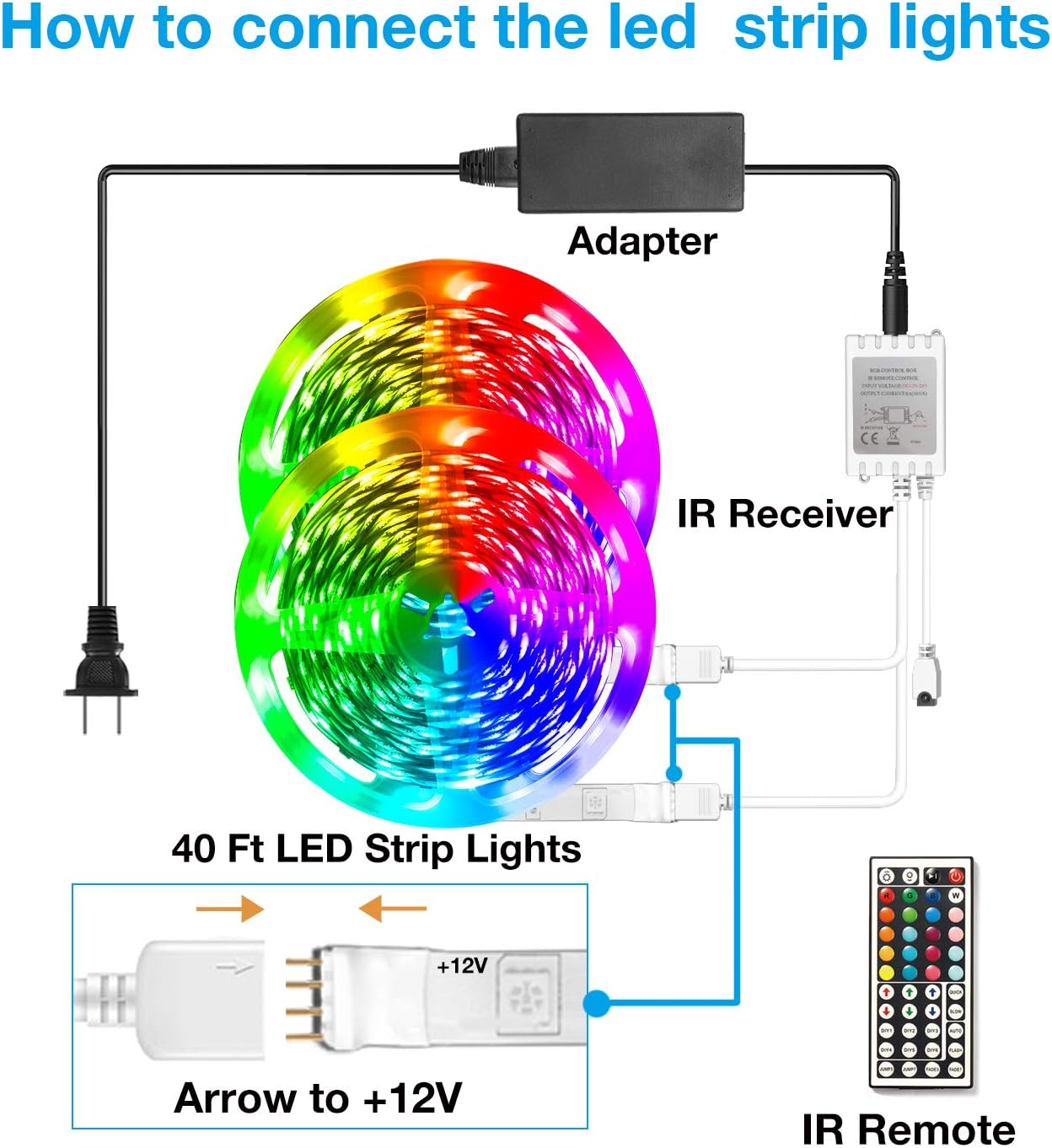 Store New Arrivals Add to Favorite View Feedback Contact Led Strip Lights 40Ft, RGB Color Changing Led Strips with 44 Keys Remote Control for Room, Bedroom, Suitable for Home Decor, Living Room, Kitchen, Home Party Decoration, 24V Description Item model number FLSL-DR50312-RGB-US Light Source Type LED Style Modern Number of Items 1 Power Source Corded Electric Number of Light Sources 150 Control Method Remote Light Direction Downlight Theme Rainbow Batteries Included? No Controller Type Remote Control Batteries Required? No Brand Unbranded Material FPC Batteries 2 A batteries required. Number of Batteries 2 A batteries required. Package Dimensions 8.23 x 8.19 x 0.67 inches Included Components Light kit inlcuded Indoor/Outdoor Usage Indoor Light Color Multicolor Item Weight 7.8 ounces Specific Uses Indoor use only, room decor, bedroom decor, christmas decorations, christmas gifts Occasion Christmas Special Features Dimmable Special Feature Dimmable Part Number YOOUS Color Multicolor Wattage 24 watts Shape Linear Voltage 12 Volts Shade Material Plastic Size 40FT LED LIGHTS FEATURES: Our 5050 RGB led chips (216 leds) allows the led lights to be very colorful and durable, the remote can dim the led light strip and offer different colors and modes WIDELY USE: This Led light strip suitable for Halloween, Christmas, bedroom, living room, party, wedding indoor EASY INSTALLATION: Just stick the led strips on a clean, dry surface and start enjoying the strip lighting, Create a romantic color. (Pls test the product before installation) IR REMOTE CONTROL: Come with a 44 keys remote controller, support changing 20 colors, it has 20 colors options, 8 light modes Product Description Led strip lights,light up your life This 40feet(2 rolls of 20ft) rgb led strips light has 20 colors, 8lights modes : quick, slow, auto, flash, 3 colors fade, 7 colors fade, 3colors jump, 7colorsjump, fit for kitchens, under cabinets, dining room, bedrooms, TV backlighting, cars, around mirrors, balconies, patios decoration,or family events. Package Contents 20ft led strip lights*2 12V/1.5A Power Adapter*1 44Keys Remote Controller*1 12-24V Control Box*1 User manual*1 Main Features 8 lights modes,20 colors changing 44 Keys IR Remote control Powerful double-sided tape Specification: Material: FPC Color:Rgb (Red Green Blue) Input:100-240V AC Output: DC12V/5A Length: 40ft/12meters(in 2 rolls) Source life:50000 hour Applications Living Room Home Theater Bar Decoration Additional Features Strong Adheisive With powerful double-sided tape, this led strip lights support to stick in any dry,clean and smooth surface. Adhesive has to keep being stuck down at the start(Recommend) Cuttable and Linkable This led lights strip support cut it along cutting marks if you not need so long length, it also support link it if you once cut it by accident(additional connector need, not include in package) DIY Function 6 DIY buttons allow you save 6 colors you like. Step 1: Turn on the lights. Press the DIY1 button(the lights will change to white color for the first time). Step 2: Longer press the red/green/blue down butten until get the color you like. Step 3: Press DIY1 button again, DIY1button will remember the color you set in Setp2 . Step 4: Repeat the steps above to set the rest of other five DIY buttons. ABOUT US We offer the best prices around on high quality products. Our E-store includes media such as books, movies, music and games while offering electronics, toys, sporting apparel, clothing, tools, general home, garden items and more. SHIPPING We are always working hard to ensure your package arrives as soon as possible. Please understand that some factors like weather, high postal traffic, and the performance of shipping companies are outside of our control. We offer free shipping to the lower 48 states and ship within 2 business days of payment, usually sooner. We do not accept P.O. Boxes. Please provide a physical address. RETURNS We offer a 30-Day Return Policy on items which you are not completely satisfied with. You have the option for a full-refund or an exchange of the item. No returns are available on items shipped outside of the USA. PAYMENT We accept PayPal. CONTACT US This page content is yet to come Please ad us to your favorite seller and visit again later Thank You CUSTOMER SATISFACTION We try our very best to make sure every customer is completely satisfied. If there's a problem, message us! We're happy to help.