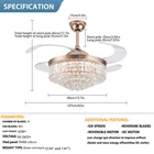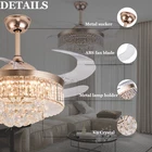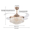 Description Get the ideal choice of both worlds with our ceiling fan light! It's a combination of a fan and a chandelier that allows you to control the light color, fan speed, and time setting through a remote control. The lampshade is adorned with luxurious crystal, making it a beautiful addition to your home. Key Features Sturdy and Durable: The hardware and PC with an electroplating process make it sturdy and resistant to impact, deformation, corrosion, and rust, ensuring an extended service life. High Adaptability: You can choose to install any of the 2 equipped lamp poles of 3.93" and 7.87" in height according to your needs. Its wide voltage design(85-265V) makes it adapt to different voltage environments. Thoughtful Design: When not using the fan function, the fan blades can be fo 42" Crystal Chandelier Invisible Ceiling Fan Light Lamp 3-Color LED w/Remote Description Get the ideal choice of both worlds with our ceiling fan light! It's a combination of a fan and a chandelier that allows you to control the light color, fan speed, and time setting through a remote control. The lampshade is adorned with luxurious crystal, making it a beautiful addition to your home. Key Features Sturdy and Durable: The hardware and PC with an electroplating process make it sturdy and resistant to impact, deformation, corrosion, and rust, ensuring an extended service life. High Adaptability: You can choose to install any of the 2 equipped lamp poles of 3.93" and 7.87" in height according to your needs. Its wide voltage design(85-265V) makes it adapt to different voltage environments. Thoughtful Design: When not using the fan function, the fan blades can be folded up to prevent dust accumulation, at the same time, the fan's regular setting can provide a cooling effect during the summer season, while its reverse mode during winter can push down warm air and enhance air convection, resulting in an all-around ambient heating flow. Excellent Light Source: The LED light source provides more stable and even lighting. The three light colors (warm, neutral, and cold) with a color temperature range of 3000K, 4500K and 6000K can fully meet your usage needs in different scenarios, making it more convenient. Low Noise: The pure copper motor makes the product operate at a noise level of approximately 35dB, providing you with a comfortable living environment. Smart Control: The timing function(1/2/4H), 6-speed wind speeds, and reverse function can be adjusted through the remote control, which can simplify your daily routine and enhance your overall living experience. Generous Appearance: The golden electroplated frame paired with crystal clear decorations makes this product look grand but not flashy, adding beautiful scenery to your home. Exquisite Gift: With good performance and unique appearance, it can be used as a housewarming gift for parents, friends, and lovers so that they can also enjoy a more exquisite life. Details Clear Fan Blades: They ensure the fan does not cause light to flicker during operation and will not affect the beauty of this product. Stable Base: The 5.9*2.36-inch thickened and enlarged base ensures stronger load-bearing capacity and stability. Application It can be installed in rooms with a height of about 8.69ft, such as the living room, bedroom, study, and hallway. Specification Color: Gold Style: Modern Material: Hardware, PC Process: Electroplating Light Color: Cold, Neutral, Warm Light Source: LED Light Strip Motor Type: Pure Copper Motor Indoor/Outdoor Usage: Indoor Mount Type: Ceiling Mount Control Mode: Remote Control, Wall Switch (Not Included) Efficiency: E EU Energy Label Efficiency Labeling Class: A++to E Timing: 1/2/4H Fan Speed Gears: 6 Voltage: 85-265V Power: 45W Noise: 35dB Lumen: 180lm Color Temperature: 3000K-4500K-6000K Remote Control Distance: 3-5m/9.84-16.4ft Suitable Room Height: 2.65m/8.69ft Product Size: 107*15*45-55cm / 42*5.9*15.7-21.5in Package Size: 55*55*39cm / 21.7*21.7*15.4in Net Weight: 13.3kg / 29.3lbs Gross Weigh: 14.3kg /31.5lbs Package Included 1* Ceiling Fan Light 1* Remote Control Notes 1. Please make sure that the size of the ceiling fan matches your room and carefully make a choice. 2. Please make sure the power is cut off before installation and when you clean the light. It cannot be installed on a sloped ceiling. 3. The surface of the product and the electric wire should avoid scratching when mounting, and electric insulation gloves (not included) must be worn when installing. To ensure your safety, professional ones with an electric license are recommended to carry out the installation if possible. 4. The wall control (not included) can only control lights, not ceiling fans. 5. Please allow the slight color difference caused by the shooting light and 1-3cm error due to manual measurement, and make sure you do not mind before ordering. Payment Delivery details Terms of sales About us Contact us Payment We accept ebay payment 。 Fees such as import duties, taxes are not included in the item price or shipping costs. These charges are the buyer's responsibility. Delivery details Shipping: 2-9 working days to: USA Terms of sales We maintain high standards of excellence and strive for hundred percent customer satisfaction. Feedback is very important to us. We hope that you contact us immediately before you give neutral or negative feedback, so that we can address your concerns. It is impossible to address issues if we do not know about them! About us Your satis faction is our ultimate goal. We work hard to earn your trust and future business. Our certified technicians have tested each item before shipping. The unit comes with 1 year limited warranty on all manufacturing defects. a) If you receive a defective item, you may return it or ask for a discount. Please contact us within 14 days after you receive the package. b) What you returned must be intact and in its original packaging as re? u. Customer is responsible for shipping costs of the returned item