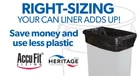 Can liners are designed to fit the most commonly used cans in the industry. Their snug fit means no more tying knots and no more paying for plastic you don't need! Choose for your toughest jobs. Made in the USA Use less plastic by Right Sizing No Wasted Plastic Built for Tough Jobs Designed to fit the most common cans.