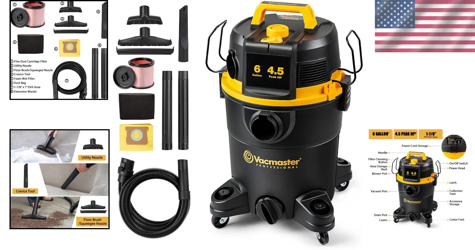 Compact 4.5 Peak HP Wet/Dry Vacuum with On-Board Accessories for All Floors ‹ › ‹ › ‹ › ‹ › ‹ › ‹ › ‹ › ‹ › Compact 4.5 Peak HP Wet/Dry Vacuum Perfect for All Floors Key Features: Powerful Performance: With 4.5 Peak HP, this vacuum delivers exceptional suction power for efficient cleaning. Generous Capacity: Equipped with a 6-gallon* polypropylene tank, designed for both wet and dry messes. Versatile Functionality: Easily converts into a blower, making it ideal for cleaning your workspace or yard. User Actuated Filter Cleaning System: Maintain optimal airflow and suction with a simple filter cleaning process, ensuring uninterrupted cleaning tasks. Organized Storage: On-board storage for hose, cord, and accessories keeps everything orderly and at your fingertips. Included Accessories: (1) 1-7/8-inch x 7-foot EVA Hose (2) Extension Wands (1) Floor Brush/Squeegee Nozzle (1) Utility Nozzle (1) Crevice Tool (1) Dust Bag (1) Fine Dust Cartridge Filter (1) Foam Wet Filter Why Choose Our Wet/Dry Vacuum? Transform your cleaning experience with our Compact 4.5 Peak HP Wet/Dry Vacuum. Designed to tackle the toughest tasks with ease, this powerful vacuum adapts seamlessly from jobsites to household cleaning. Its user-friendly filter cleaning system means you can maintain peak performance without interruptions. The handy organization of accessories ensures you are always prepared. Perfect for a variety of surfaces, it's your ultimate cleaning companion! Elevate your cleaning routine and order your Compact Wet/Dry Vacuum today! Shipping Free & Fast Shipping - We offer free shipping to most of the USA with a normal delivery time of 3-7 days. However, due to the current situation, additional delivery time (up to 3 weeks) may be required for some items. Alternative Carriers - We may use alternative carriers (e.g. USPS, FedEx, UPS, etc.) to ensure your package arrives safely and on time. Due to the use of multiple carriers, we are unable to provide a tracking number automatically. Handling Time - Orders are processed and shipped within 1-2 business days of receiving cleared payment. Shipping Restrictions - Shipping to Alaska, Hawaii, Puerto Rico, Guam, and other US territories may incur shipping charges or delivery restrictions. Please contact us before ordering, or your order can be refunded/cancelled. State Restrictions - There may be restrictions based on your state of purchase. For example, certain items may not be shipped to California due to state regulations. Contact for Tracking Updates - If you require tracking updates or have any concerns about the delivery of your order, please feel free to contact us, and we will be happy to assist you. Return Please see our eBay Return Policy. Thank you. Payment We accept all major credit cards, PayPal, and Apple Pay for your convenience. Your payment information is secure and encrypted to ensure a safe and seamless transaction. Please complete your payment within 3 days of purchase to avoid any delays in shipping. Feedback Your feedback is extremely important to us. We strive to provide the best products and customer service possible. If you are satisfied with your purchase, please take a moment to leave us a positive review. If you have any concerns or issues with your order, please contact us before leaving negative feedback. We are committed to resolving any problems and ensuring your satisfaction. Contact Us If you have any questions or concerns, please feel free to reach out to our customer support team. You can contact us through the eBay messaging system. We are available Monday to Friday, 9:00 am to 5:00 pm EST, and we will do our best to respond to your inquiry within 24 hours. Thank you for supporting our small family business! UPC: Not Set Unit Quantity: 6 gallon Features: Portable,Wet/Dry,On-Board Storage,Compact Design,Powerful Motor Included Accessories: Crevice Tool,Extension Wand,EVA Hose,Floor Brush/Squeegee Nozzle,Utility Nozzle,Dust Bag,Fine Dust Cartridge Filter,Foam Wet Filter,1-7/8-inch x 7-foot EVA Hose,2 Extension Wands,1 Floor Brush/Squeegee Nozzle,1 Utility Nozzle,1 Crevice Tool,1 Dust Bag,1 Fine Dust Cartridge Filter,1 Foam Wet Filter Brand: Unbranded Type: Canister/Cylinder Model: Wet Dry Vacuum Smart Home Protocol: Not Set Runtime: Not Set Smart Home Compatibility: Not Set Charge Time: Not Set MPN: Not Set Color: Black Power: 1320 W Filters: Cartridge Voltage: 120 V Country/Region of Manufacture: Not Set Capacity: 6 gallons Protection Plan: No Coverage Manufacturer Warranty: Not Set Item Weight: 20.1 lb Unit Type: Unit Cord Type: Not Set Bagged/Bagless: Not Set