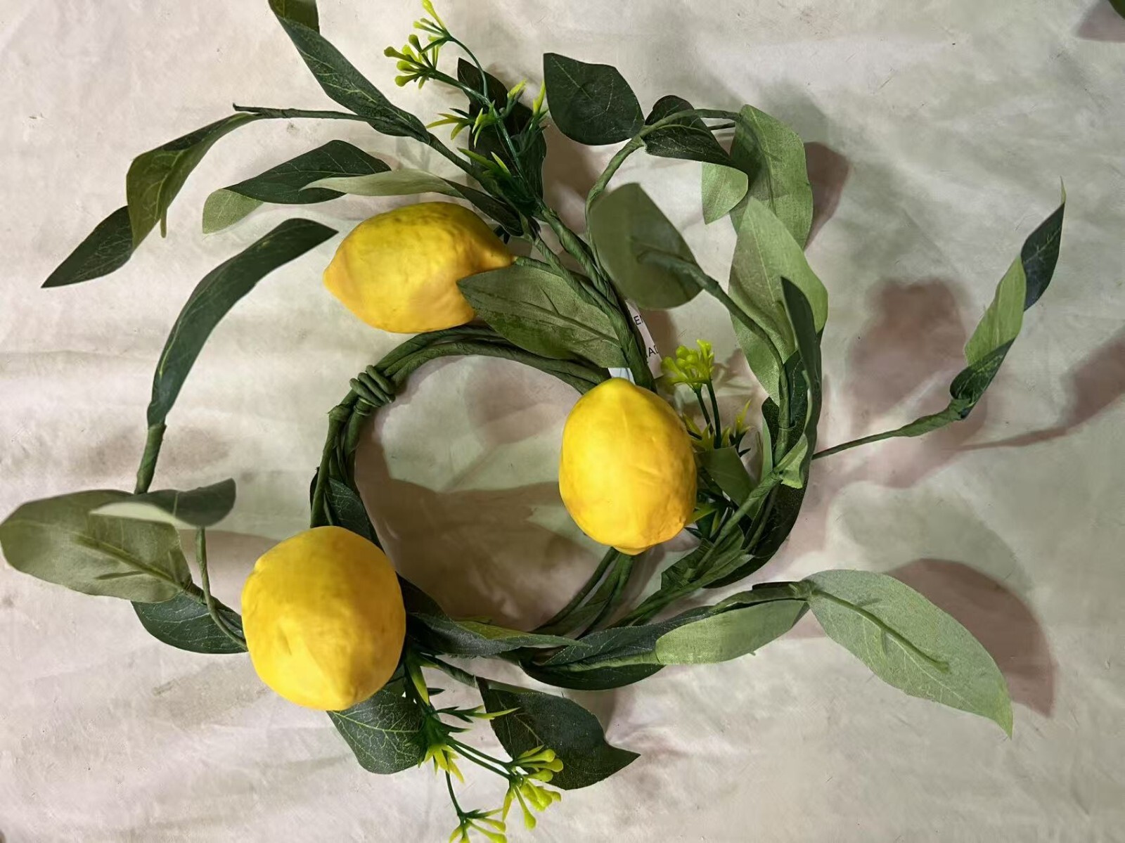 6.5 Inch Lemon Wreath - Summer Farmhouse Kitchen Decor with Artificial Citrus Accents