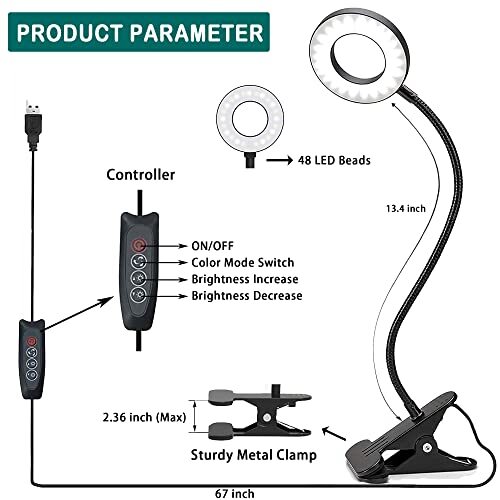 Return Policy Fast Delivery Trusted seller Desk Lamp Clip on Light with Adapter, 48 LED Reading Lamp with USB Charging Port, 3 Color Mode 10 Brightness Levels, Flexible Gooseneck, Memory Function Clamp Lamp for Home, Office, Makeup Product Description Adapter Included: The USB adapter is UL approved and complies with US national safety standards. Output Current: 5V/2A. USB POWERED: Easy to plug the USB cable into any available USB port (Power Bank/USB Socket/Laptop/Desktop/USB Adapter) to power the LED desk lamp. Please Note: Only match with the adapter of 5V/ 2A - otherwise will cause damage to the control button and LED reading light. 30 BRIGHTNESS CHOICES: LED Clip Light has 3 colours temperature: warm light (3000K), warm white light (4500K) and cool white light (6500K). Each lighting mode has 10 brightness dimming levels which quals 30 modes you can switch at will to choose the colour temperature and Brightness that suits you best to protect eyesight and reduce eye strain. Warm light is perfect for reading, relaxing or sleeping at night. Cool white light is more suitable for your studying, reading or working. EYE PROTECTION and MEMORY FUNCTION: Clip on desk lamp made of high quality 48 LED lamp beads offer non-ghosting/no flickering/non-dizzy/no shadow light, the ring lamp won't make eyes fatigued even staying in the light for a long time. Especially suitable for kids reading at night but does not hurt their eyes. Our USB lamp has a power-off memory function, which can restore your last lighting mode and Brightness level. STURDY CLIP and WIDE RANGE OF USE: The sturdy metal clip opens up to 2.36 inches, it is very portable for fixing on the desk, headboards, dressing table, workstation and more. The table lamp is suitable for reading on the desk, reading on the bed, camping lighting, children learning, domitory studying, laptop lighting, work lighting, makeup lighting and traveling, leisure and entertainment. GREEN READING LAMP: As an LED lamp, table lamp consumes 80% less power than traditional tungsten filament incandescent lamps, which means reduced electricity bills. In addition, our desk lamps don't contain harmful elements such as mercury and are not polluting the environment. Great Thanksgiving/Christmas/Birthday/Enrollment Gift for kids and family! Shipping Returns Payment Shipping Shipping is FREE to all addresses other than APO/PO boxes in the lower 48 states. All our stock ships from US-based warehouses. Shipped via USPS or UPS (depending on location and package weight) Unless stated otherwise, all orders will ship within 24-72 hours of your payment being processed. Check our feedback to see the great reviews of FAST shipping we offer. Returns Seller does not accept returns Payment We currently accept payment via eBay managed payments only. Once payment is cleared, we will dispatch your shipment within 1-3 business days. Please refer to the "Shipping" tab for more information regarding shipping speed to your destination.