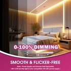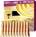 Not Easily Oxidized:The fluorescent glue of the COB lamp strip is designed to be taller and wider to better protect the lamp beads and improve the lighting effect.And the inside of the fluorescent glue is gold-plated, so the light strip is not easy to oxidize. High Quality Adhesive:The adhesive uses 3M Adhesive backing (VHB 5604A), a high-quality VHB foam adhesive with strong adhesive effect and not easy to slip off.The back is filled with steel to better protect the chip. High Density:Made of double sized copper PCB board, strengthen the heat dissipation.COB(chips on FPC) LED strip lights making strips last longer.High-density lamp bead arrangement makes the light smoother and more uniform without any spots. High Compatibility:Professional quality 48V LED strip lights require a professional DC 48 Volt power supply (sold separately). It more compatible with dimming systems and remotes such as 0/1-10v, phone app dimming, and RF handheld dimmers. Dimmable (0-100%) with most ELV, TRIAC dimmers. High CRI:The higher the display index, Ra>90+, R9>70+, the better the color rendering of the light source, the stronger the ability to restore the color of the object, so the higher the color rendering, the less likely it is to damage eyesight. Multi-scenario Use:The cob led strips light can be used in a wide variety of applications including, General accent lighting, Under cabinet lighting, Above cabinet lighting, Toe kick lighting, Shelving lighting, Back lighting, Bathroom and bedroom lighting, Ambient lighting, Cove lighting, Awning and eave lighting, Bar and restaurant lighting, Pathway lighting, Hotel lighting. Specification:Double Sized PCB width 10mm, Input Voltage: DC 48V,4500LEDS/Spool,Ra>90+,IP30 Indoor Use, 3W/ft,300Lm/ft,max run to 49.21ft (DC 48V) without voltage drop,10 years After-Service,Packing List: 48V COB LED Strip Light, Mounting Clips, DC Male,User Manual. Product Description Features 1 3M VHB Foam Cotton Tape 2 High Quality Chip 3 Not Oxidize 4 0-100% Dimming 1 UL Listed 2 Continuous & Uniform 3 High CRI 4 No Pressure Drop FLEXIBLE, EASY TO DIY PRODUCT PARAMETERS Usage Level Emitever Lighting GOLD 48V COB LED Strip Lights Series(Professional) Color Temperature 3000K/Warm White Width 10mm Number of LED 137LEDs/ft Power 3W/ft Luminous Flux 95 Lumen/w SDCM SDCM<3 Waterproof Grade IP30 UL-Listed Yes Type of Strip COB(chip on board)