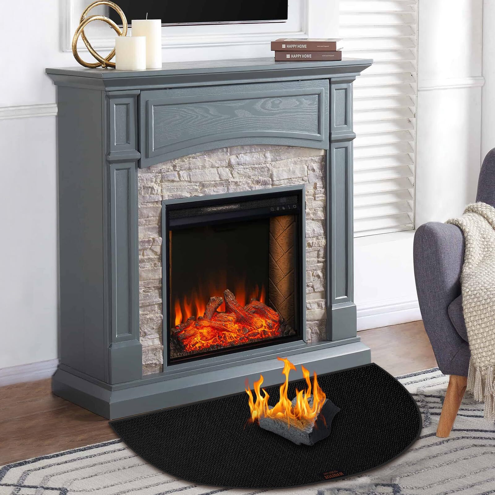 2000°F High Temperature Resistance: Our fireproof hearth rug is made of fiberglass with double-sided high-temperature resistant silicone coating and silicone anti slip pads, allowing withstand temperature up to 2000 °F. The fireplace mat has finely stitched edges that won't stick, tear, curl, or crack from the heat, ensuring durable protection for your floors Non-slip Fireplace Mat: The fire retardant hearth mat is 42 x 24 inches, which is made of non-slip silicone cloth on front and back surfaces. it can firmly grasp the ground, not easy to slide. NOTE: The top of our fireplace mat has the brand logo (). Please ensure the side with the logo is facing up during use, the surface with the anti-slip touching the ground directly Protect Floors from Damage: We designed this fireplace mat to protect the floor from charcoal splash when the fireplace is burning. The mat is large enough well crafted, can be used indoors and outdoors to prevent the bottom from burning, protects environmental hygiene and reduces cleaning burden Easy to Clean and Storage: Both sides of the fireproof pad are covered with non-slip, fireproof and waterproof silicone coating. You can directly use a vacuum cleaner, a broom, or shaking to clean the fireplace floor protector mat, wipe with a damp towel or rinse with a water hose. Plus, it can be easily folded or rolled up for convenient storage when not in use Widely Used: Our fiberglass fire-resistant fireplace mat is highly versatile, offering excellent protection for a floors, carpets, decks, garage floors, and patios. It’s ideal for use under fireplaces, outdoor grills, fire pits, stoves, chimineas.