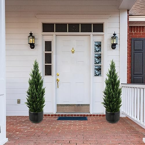 Return Policy Fast Delivery Trusted seller 4FT Artificial Topiary Tree Beautiful Realistic Faux Cedar Pines Christmas Trees UV Rated Fake Shrubs for Front Porch Faux Plants Indoor and Outdoor Decor (2 Pack) Product Description Realistic Artificial Topiary Trees - A fabulous set of 4 upgraded quality faux trees. Perfectly modeled after lovely cedar and pine trees that grow wild in many parts of the US and Canada. These look like the real thing, but never require planting, water, fertilizer, or trimming. Simply set them out and enjoy. No need to place plastic bags over your cedars in winter like the neighbors. Extra Tall 4 Feet - These measure a tall 48" from bottom to top with a lush green appearance that always pleases. Trees are compactly packed in a thicker box for safe shipping. Set them out and allow a day or two for the branches to expand to their natural full look. Perfect for front yard, in planter boxes, along a walkway or driveway, or set indoors for a year round Christmas tree to add life and natural energy to any room. Durable 7" Pot - We go the extra step of making our pots larger, much thicker, and far more durable. Pots won't arrive cracked like those sold elsew. These heavier pots are stable and won't tip like others. They are ideal for placing inside your fancy stone or wood planter. UV Resistant for Years of Enjoyment - Made of top quality plastic to last and look good for 3-5 years of impressive decoration depending on your local climate. You can set them and forget them with no gardening or green thumb required. Great Gift Idea - Makes a fun gift for anyone who wants to decorate their yard with easy natural looking faux trees and greenery. We use a thicker, higher quality pot and ship in a well packed heavy duty box. If your product arrives damaged, please contact us immediately for a no-cost resolution. Many people are buying several 2-packs of trees to fully decorate their yard. They are selling fast after being spotlighted by professional landscapers as a great value. Shipping Returns Payment Shipping Shipping is FREE to all addresses other than APO/PO boxes in the lower 48 states. All our stock ships from US-based warehouses. Shipped via USPS or UPS (depending on location and package weight) Unless stated otherwise, all orders will ship within 24-72 hours of your payment being processed. Check our feedback to see the great reviews of FAST shipping we offer. Returns Seller does not accept returns Payment We currently accept payment via eBay managed payments only. Once payment is cleared, we will dispatch your shipment within 1-3 business days. Please refer to the "Shipping" tab for more information regarding shipping speed to your destination.