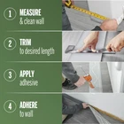 Elevate Your Space with a Polished Finish: Enhance the look of your walls and baseboards with the Dry Back Vinyl Wall Base. This cove base adds a touch of elegance to any room and is available in a range of finishes to complement any decor style. Premium Vinyl Trim Molding: Our vinyl trim molding is made from advanced soft vinyl, ensuring rubber-like durability and flexibility. It resists cracking and can be easily tailored to your needs. This waterproof material can be effortlessly cleaned with a damp cloth. Multi-Purpose Utility: Expertly designed to conceal gaps between uneven floors and walls, providing a polished and seamless appearance. This versatile solution enhances the aesthetic of any room, making it ideal for use in both home and office environments. Durable and easy to install, it ensures a professional finish that stands the test of time. Endurance Engineered: Our premium vinyl baseboard molding is designed for exceptional durability and resilience. Crafted from high-quality vinyl, it withstands daily wear and tear. Its smooth, durable surface resists scuffs and scrapes, ensuring long-lasting performance. Effortless Installation Process: Our ribbed dry back design makes installation a breeze, requiring only adhesive (sold separately). Simply clean the surface, measure the required length, cut to size, and apply the adhesive. This streamlined process saves time and offers convenience to users of all levels.