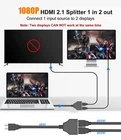 Installation steps: 1. Connect your devices with this splitter cable 2. Turn the signal source on or choose HDMI signal source 3. Turn the first display on first and wait till it works properly 4. Then turn the second display on and enjoy it Specifications: Color: Black Length: 11.8 inch (30 cm) Weight: 52.00g Function:Support Two TVs at The Same Time, Signal One in, Two Out , 24k gold-plated connector. Features: With this HDMI signal splitter,you can connecting one HDMI compatible device (Xbox, Blue ray, DVD players, PS3) to two visual output devises (such as, HDTV, Monitor, etc.). This HDMI Splitter Adapter Cable can transmits the video & audio signal from one HDMI compatible device (such as, a Blu-ray player, etc.) to one of two visual output devices (such as, HDTV, Monitor, etc.) that are plugged into it. If you have two HDTV in two different separate rooms, and you want to let the two different HDTV show the same image. After connected, you just need to turn one TV off and turn the other TV on, this HDMI splitter adapter cable can allow you watch the same image of TV in two rooms. Buyer Note: If you are satisfied with our service, we appreciate you leaving us a positive feedback and 5 star rating review! Your opinion is important to the success of our business. If you are not satisfied with the product or have not received the product for more than 35 days, please contact us to resolve, we will do our best to solve. We are sure to come up with a satisfactory solution. Please contact us first before leaving cold feedback or good feedback of 1-3 stars and opening the case. We'll do our best to solve your problem. Because we believe that everything can be solved through communication. Thank you very much!