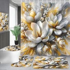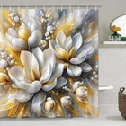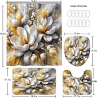 4-Piece Magnolia Flowers Shower Curtain Set Dreamy Beauty Bathroom Gold Product Details Brand: Pretyw Color: Gold Material: Polyester Product Dimensions: 70.8"L x 70.8"W Opacity: Blackout 【PREMIUM FABRIC】The shower curtain is made of durable 100% polyester fabric, ensuring rapid drying after use. The bathroom mats are made of premium sponge, flannel, and a non-slip bottom, providing luxurious softness and efficient absorption to keep floors dry and clean. 【UNIQUE PATTERN DESIGN】Our shower curtain sets use HD digital printing for colorfastness and reliability. Clear images enhance the decorative appeal of your bathroom/toilet, adding personality and aesthetic charm, creating a relaxed and pleasant atmosphere. 【SIZE INFORMATION】The shower curtain size: 70.8" L x 70.8" W, the bathroom rug size:29.5" L x 17.7" W, the toilet lid cover size: 17.7" L x 13.8" W, the U shape rug size: 17.7" L x 14.8" W. This bathroom set size is suitable for most bathrooms. 【EASY INSTALLATION AND MAINTENANCE】Effortlessly install the fabric shower curtain with our complimentary hooks for quick setup. The shower curtain sets with rugs is easy to machine wash with cold water or hand wash. Simply hang it to air dry naturally, but avoid bleaching, tumble drying, or prolonged exposure to sunlight. 【VERSATILE USAGE】This shower curtain with hooks is versatile and can enhance different spaces like bathrooms, toilets, walls, and windows. It's effortless to install in homes, apartments, hotels, dormitories, clubs, and other venues. Additionally, this adaptable magnolia flowers shower curtain can enhance the aesthetics of your bedroom walls and other desired areas, serving as both a bathroom accessory and wardrobe curtain.