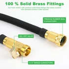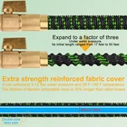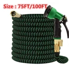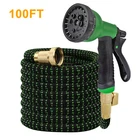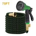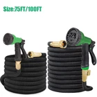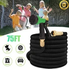 Feature [EXPANDABLE] This Expandable Garden Hose starts out small and can expand to up to 3x its size under standard water pressure. When done using simply turn the water off and the hose will shrink back to its size. Easily rolls up and stores away between uses. No tangling, knotting or twisting. [SOLID BRASS] Each hose is tipped with solid brass connector to ensure the hose can screw on easily to any standard spigot. So many uses for the expanding garden hose; gardening, patio cleaning, pet bathing, car wash. [SPRAY NOZZLE] Hose spray nozzle has a rubber handle for easy grip. 8 unique spray patterns for every function. [DURABILITY] Outer elastic fabric with inner latex core for maximum durability. Tested for endurance, these hose will not burst or rupture. [PREMIUM] Premium quality makes useful life much longer: Triple layer latex inner wrapped by interwoven elasticated fabric, with 3/4 inch US standard fittings, these hoses are endurance tested up to 2000 uses under the water pressure of 145 PSI/10 Bar. No more bursts, cracks, leaks or corrosion. Specifications Color:Black/Green Material: Nylon w/ Triple Latex Core + Solid Brass Size: 75FT / 100FT Fit: Any Standard Spigot Nozzle: 8 Spray Patterns Expand: Up to 3X 75Ft Product dimension: Original length: 25 feet/Expanding length: 75 feet 100Ft Product dimension: Original length: 33 feet/Expanding length: 100 feet Features Solid Brass Connectors Our hoses are finished off with solid brass connectors to ensure an easy and secure fit with any standard spigot. Connectors will not warp or rust. Expandable up to 3X Featuring the latest in hose engineering, hour garden hose can stretch up to 3x using standard hose pressure. When pressure is turned off the hose will immediately shrink back to its size. Expandable This Expandable Garden Hose starts out small and can expand to up to 3x its size under standard water pressure. When done using simply turn the water off and the hose will shrink back to its size. Easily rolls up and stores away between uses. No tangling, knotting or twisting. Solid Brass Connectors Each hose is tipped with solid brass connectors to ensure the hose can screw on easily to any standard spigot. So many uses for the expanding garden hose; gardening, patio cleaning, pet bathing, car wash. Premium Material Premium quality makes useful life much longer: Triple layer latex inner wrapped by interwoven elasticated fabric, with 3/4 inch US standard fittings, these hoses are endurance tested up to 2000 uses under the water pressure of 145 PSI/10 Bar. No more bursts, cracks, leaks or corrosion. Durability Outer elastic fabric with inner latex core for maximum durability. Tested for endurance, these hose will not burst or rupture.