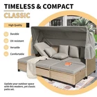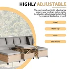Specification Product Information Item Code: SP100121AAD Product Type: Combo Item Product Name: TOPMAX 4 Piece UV-Proof Resin Wicker Patio Sofa Set with Retractable Canopy, Cushions and Lifting Table,Brown Main Color: Brown Main Material: Rattan Filler: Foam Product Style: Casual Use Case: Garden & Outdoor Outdoor Seating Type: Sofa Seating Groups Set Design: Complete Patio Set Cushions Included: Yes Frame Durability: Water Resistant Frame Cushion Durability: Water Resistant Cushion Product Dimensions Assembled Length (in.): Not Applicable Assembled Width (in.): Not Applicable Assembled Height (in.): Not Applicable Product Weight (lbs.): Not Applicable Package Size Outer Package Images Sub-item 1: N717P264150D Package Quantity: 1 27.75 * 24.25 * 22.75 in. 55.12 lbs. Sub-item 2: N717P264149D Package Quantity: 1 40.75 * 24.25 * 19.75 in. 77.16 lbs. Product Features [Timeless & Compact] Update your outdoor space with this modern, yet classic patio set. This wicker sofa set features a natural woven pattern and a sleek silhouette which will never go out of style. Specially designed to fit in limited space, turn the matching tables upside down on the sofa to create a compact and convenient way to store the set away. [Effective UV-Resistant] This sofa set is an ideal choice for summer days with strong sunlight, the retractable canopy helps to block out harmful UV rays and provide cool shade when you stay outdoors. The weather-resistant rattan is coated with UV-resistant material to protect sensitive skin and eliminate the risk of skin cancer. [Highly Adjustable] The user-friendly vertically adjusting top ensures your needs are met no matter the situation, allowing you to place food, beverages or books close at hand. The sofa provides 3 reclining positions in 15 degree increments to choose from, adjust the sofa upwards or downwards to support your back and legs comfortably and enjoy a luxurious lounging experience. [Quality Craftsmanship] This sofa set includes a 4-seat sofa and 3 identical matching ottomans(one can be a table), with all pieces constructed with a solid steel frame and high grade rattan to ensure long-lasting use and to preserve appearances. The brown cushions are upholstered in tough polyester fabric to resist spills and stains, and are jam-packed with thick sponge for the utmost seating comfort. [Simple Assembly] With canopy:77.8x23.6x50.2inch(LXWXH). 2 boxes in total which may not come together. For more size, please refer to size image. Simple set up with clear instructions provided. If you have any questions or concerns, please feel free to contact us. Description Timeless & Compact Update your outdoor space with this modern, yet classic patio set. This wicker sofa set features a natural woven pattern and a sleek silhouette which will never go out of style. Specially designed to fit in limited space, turn the matching tables upside down on the sofa to create a compact way. Highly Adjustable The user-friendly vertically adjusting top ensures your needs are met no matter the situation, allowing you to place food, beverages or books close at hand. The sofa provides 3 reclining positions in 15 degree increments to choose from. Effective UV-Resistant This sofa set is an ideal choice for summer days with strong sunlight, the retractable canopy helps to block out harmful UV rays and provide cool shade when you stay outdoors. The weather-resistant rattan is coated with UV-resistant material to protect sensitive skin. Weight&Dimensions&Specifications Overall Product Dimension with canopy:77.8x23.6x50.2inch(LXWXH) Overall Weight Sofa Net Weight: 69.3lbs Each Table Net Weight: 15.4lbs Weight Capacity Sofa Weight Capacity: 400lbs. (Each Seat) Table Weight Capacity: 176lbs Material PE Rattan+Steel+polyester Cloth+foam(1.7lbs/cu.ft) Pieces Included 4-seat sofa and 3 identical matching ottoman+Retractable Canopy+5 Pillows+4 Cushions(including 1 long cushion in sofa) Color Brown Assembly Required Yes Additional Tools Required All Tools Included Country of Origin Vietnam Product Warranty Please Read Return Policy Maintenance&Notice Outdoor Furniture Care To remove dirt and debris, vacuum with a dust- brush attachment or use a dry paintbrush. Clean with a mild soap solution, scrub with a sponge, rinse with cold water and dry completely. When outdoor furniture is not in use, we recommend covering all the furniture to protect it against the elements. Assembly Notice Please read assemble manual in advance. Please do not over-tighten nuts, as this may cause distortion or breakage. Color Notice Items may slightly differ from photo in terms of color due to the lighting or your monitor's display. Size Notice Manual measurement has been used, there may be some reasonable error.