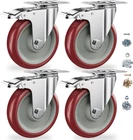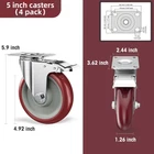5 inch Casters Heavy Duty Caster Wheels, Set of 4 Safety Locking Casters for Wheelbarrows, Workbenches, Furniture, Smooth Unmarked Silent Rolling Polyurethane Wheels with Load Capacity 2400 lb Security Locking Mechanism: The heavy-duty caster wheels feature a Rotate 360 degrees & locking system that provides enhanced stability and safety during use. Floor Protection: These casters are designed to be safe for all types of floors, including hardwood, laminate, tile, and carpet, ensuring no marks or scratches. High Weight Capacity: With a total weight capacity of 2400 lbs (600 lbs per caster), these industrial casters can easily handle heavy loads and provide reliable support. Smooth and Silent Rolling: The PVC rubber wheels ensure smooth and quiet rolling motion, allowing for effortless movement of carts, workbenches, and furniture. Versatile Application: These 5-inch caster wheels are suitable for a wide range of uses, including industrial settings, residential applications, furniture, carts, toolboxes, and more.