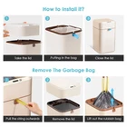 【Touchless Trash Can】Our electric trash can uses advanced automatic sensing technology, you can wave of your hand, gently kick the motion sensor trash can or slight bend of your knee, the lid will automatic opens quickly; Lid closes after 5 seconds automatically if none movement is detected by sensor. 【Battery Operated Trash Can】 Please install 4 AA batteries (not included) before using this automatic trash can. please pay attention to the positive and negative poles of the battery. We have included a roll of garbage bags for you. We recommend using about 6 gallon trash bags. 【Self-sealing Trash Bag】Put on the garbage bag and close the top cover. The automatic touchless garbage can lid triggers the automatic adsorption mechanism to keep the garbage bag close to the inner wall. This ingenious feature maximizes the capacity of the wastebasket and saves space. 【Touch-free Motion Sensor Lid】The flip up lid design not only keeps the trash hidden but also prevents unpleasant odors from escaping. The lid is equipped with a smart motion sensor for a seamless opening and closing mechanism, which effortlessly seals odors and maintains a fresh smell in your kitchen. 【Easy to Clean & Durable】The touchless trash can is made of new ABS material, the surface is durable and easy to wipe down to clean. It's 5 Gallon (19 Liter), 9.8 inch length * 8.5 inch width * 14 inch height. The automatic trash can perfect for place in the office, kitchen, living room, bedroom etc. 【Important Reminder】If you encounter any problems during use, you can watch the use video to resovle it. If you have any questions, please feel free to contact us.