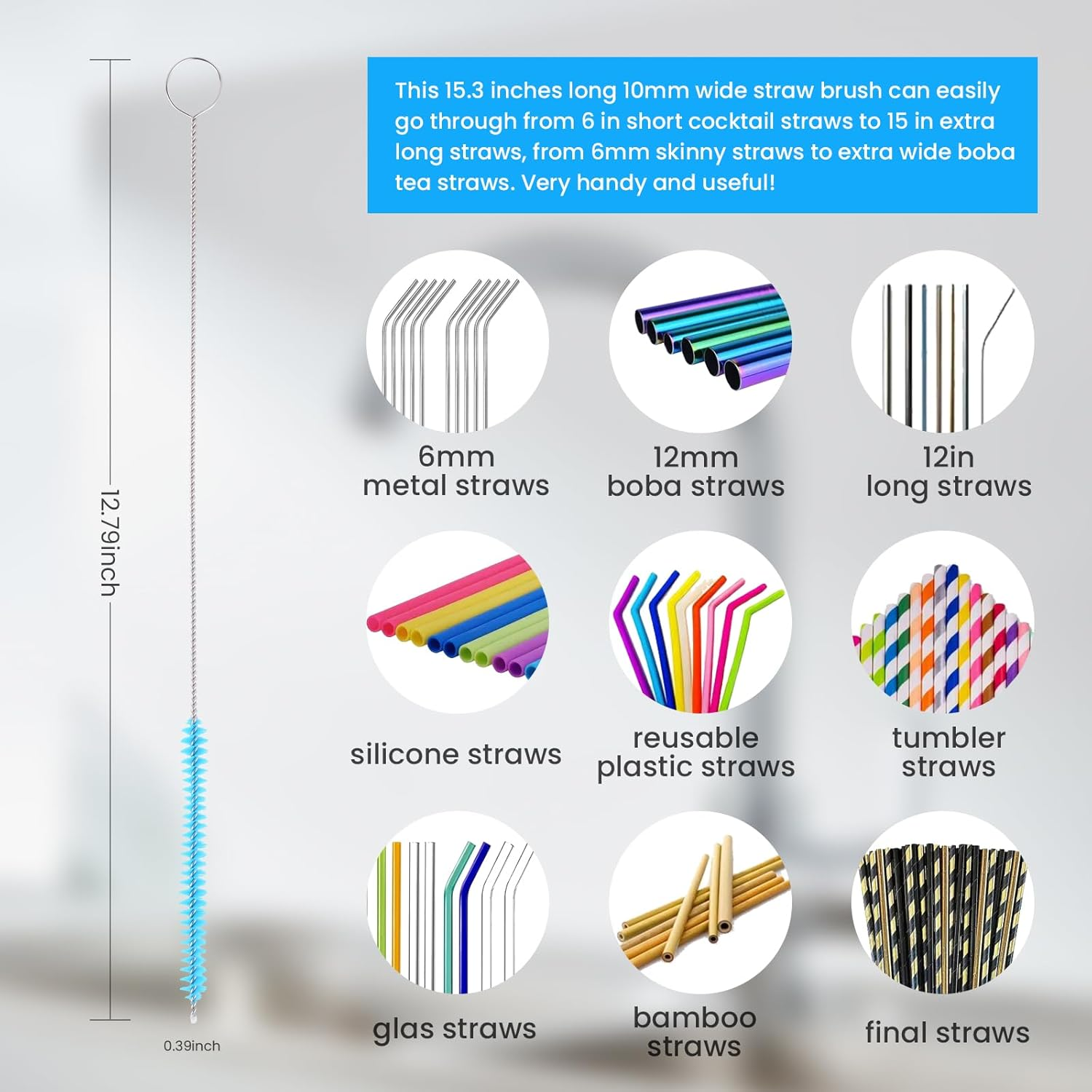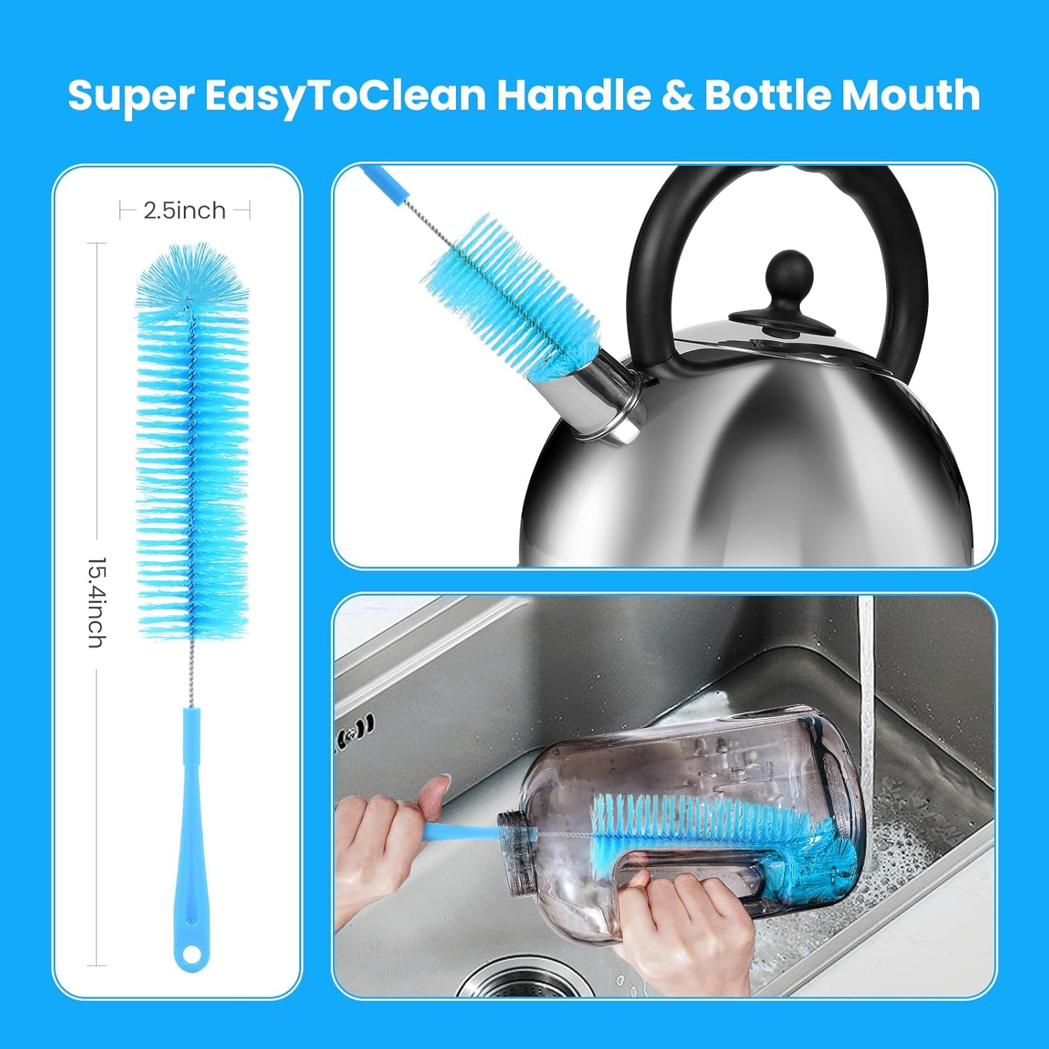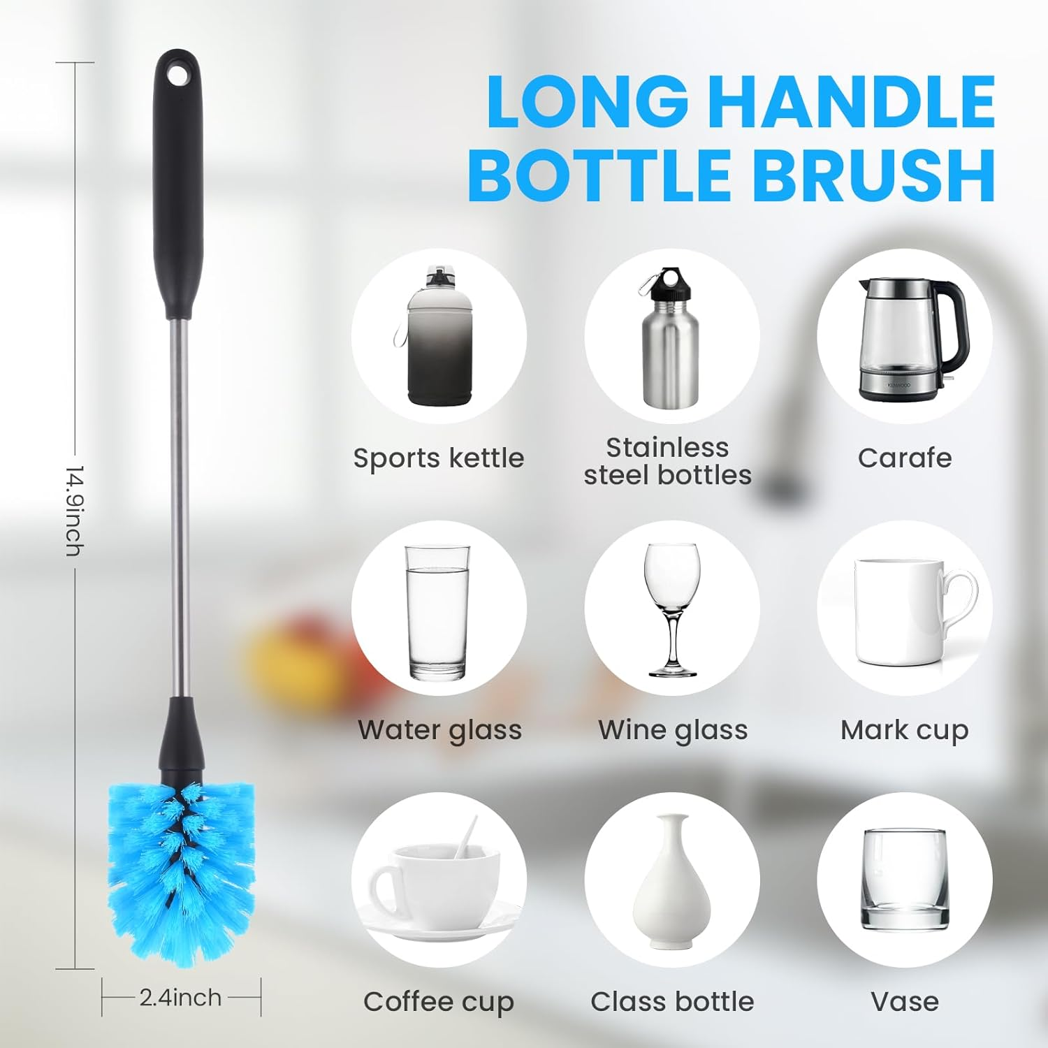 These bottle brushes are a game-changer! The set includes sturdy stainless steel brushes and handy straw cleaners, making it super easy to scrub water bottles, mugs, and tight spaces. Love that it’s safe for non-stick surfaces and comes in a convenient 5-pack. The long handles reach deep spots effortlessly, and the blue color adds a nice touch. Highly recommend for keeping drinkware spotless!