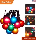 50 Foot Outdoor Colored String Lights - G50 Assorted Satin Pearl 2 Inch Globe Bulbs - Black Wire + 2 Free Spares for Patio Backyard Deck Tree and Party Lighting This G50 outdoor patio string lights set includes one 50 ft Black light string and 52 Assorted Satin Pearl glass light bulbs. The outdoor black light string has C7 E12 sockets spaced every 12". The length from the plug to the first light bulb is 6". Our colorful G50 assorted globe light bulbs are 7 watts each and 2" tall by 2" wide. The ASSORTED SATIN color mix includes Red, Orange, Green, Blue, and Pink. Manufactured with UL listed heavy duty 18-gauge SPT-1W wire and rated for up to 959 watts (8 amps)-commercial quality durable light string. Long-life dimmable bulbs last for 3,000 hours. They feature a high-quality nickel base and use 130 volts. These waterproof plug-in lights are for indoor and outdoor use -round. If one bulb burns out, the rest will stay lit. This 50 ft set is connectable. You can plug up to 2 sets end to end or combine them with one of our shorter string light use -round. If one bulb burns out, the rest will stay lit. Using G50 7-watt bulbs, you can connect up to 125 feet for long outdoor string lights! Perfect colorful lighting for your home, patio, party, backyard, trees, celebration, or even a Christmas tree! We want to make sure you are 100% satisfied with your purchase. is an American business. We strive for excellent customer service provided by real people. Please get in touch with us if you have any questions or concerns.