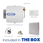500M 12-gal. Whole-House Small Bypass Evaporative Humidifier with Manual Control for up to 3,600 sq. ft. + Model 5843 Humidifier Installation Kit BALANCED HUMIDITY FOR HEALTH AND HOME PRESERVATION – Help minimize the formation of bacteria, viruses, fungi, and dust mites that thrive in low humidity and help preserve wood floors, cabinetry, furnishings, and other items susceptible to dry air WHOLE-HOUSE HUMIDIFICATION – Deliver 12 gallons of moisture per day in homes up to 3,600 sq. ft. with trouble-free performance and minimal maintenance. The water panel removes impurities before adding moisture to the air. Use genuine 10 Water Panel for annual MANUAL CONTROL – The included Model 4655 Manual Humidistat monitors your home's air providing precise control and the onboard sensor actively measures the relative humidity throughout your home and turns on the humidifier when needed giving you peace of mind INSTALLATION KIT – No need to find the parts yourself. This convenient bundle comes with all of the genuine parts needed for installations in homes with ducted heating systems plus detailed installation instructions BUY WITH CONFIDENCE – Whole-House Humidifiers are designed and assembled in the USA using US and global components by , the leader in Indoor Air Quality solutions for the home since 1954, and come with a 5- satisfaction INCLUDES – 500M Whole-House Humidifier, Model 4655 Manual Humidistat, (1) genuine 10 Water Panel, (4) #8 x 3/4 Mounting Screws, 6" Round Duct Collar, 6" Bypass Flex Duct (2 ft.), ¼" outside diameter (OD) Water Supply Tube (25 ft.), ½" interior diameter (ID) Drain Tube (10 ft.), ⅝" Hose Clamp, Current Sensing Relay Model 50, 18/2 Thermostat Wire (10 ft.), and (4) Twist-On Wire Nut Connectors The 500M Whole-House Humidifier is designed for homes up to 3,600 sq. ft. The included manual humidistat lets you control the humidity level throughout your home. While balanced humidity exists between 40–60%, it's important to remember that outdoor temperature and other home factors will impact what relative humidity level is attainable and recommended for your house. You’ll enjoy balanced humidity thanks to the evaporative process, which works by passing hot, dry air from your furnace over the interior water panel to add moisture before returning the humidified air into your home using the existing blower fan in your HVAC system. The water panel is essential to the process, ensuring the removal of impurities from the water and providing uniform, high evaporation for whole-house humidification. invented the whole-house evaporative humidifier in 1954, and this unit is designed and assembled in the USA utilizing US and global components. It offers multiple options for installation, making it simple to experience the benefits of balanced humidity throughout your living space.