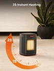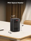500W MINI HEATER: Reliable and sturdy, this heater provides continuous heat. It's best used for personal heating. It's small for localized close up, you can put this under, or on your desk. 500 watts of power to put out more heat with very low noise. Offering quiet operation and unique PTC ceramic heating elements. PORTABLE CONVENIENCE: Designed for ease of mobility, it fits almost anywhere. It features an impressively compact design and one-button operation. ON/OFF switch. Straight 500 watts. It's good for you if you are sitting in one spot, like snuggled up on a couch or chair watching a movie, or sitting at a desk in your office space. Getting your hands warm. CONVENIENT & SAFE FEATURES: Our space heaters have built-in safety overheating and tip-over protection, the heater will auto-turn off if accidentally tipped over or overheated. With its tip-over and auto shut-off overheating protection, you can sleep peacefully knowing you’ve got a heater with excellent safety features. The power indicator light lets you know when it's plugged in. SAFE AND HASSLE-FREE: Perfectly safe around children and pets, with no exposed heating elements that could cause a fire. ETL certification ensures the highest safety standards - tip-over and overheats shut-off protection. The heating device provides users with a safer and more comfortable operating experience. DEFEAT COLD IN 2S: Nothing beats a great basic, this sleek black heater is essential in any home, heating up quickly in just 2 seconds. Discover the ceramic desk heaters that can be placed on the floor or desktop. Makes a great addition to an office, bedroom, or any other enclosed area. Product Description MORE WARMTH, LESS NOISE Key Features Small Efficient Heater Speedy heating function distributes warmth quickly. This portable heater provides you with soothing warmth to keep your home cozy. Handy Operation One-button operation, power on to increase the much-needed 500W. The one-button control is both easy to use and cleverly designed. Auto Overheat Cut-Off Protection Mini space heaters with safety guards automatically shut down in the event of an overheating accident. Reliable Safety Features Includes built-in safety features, like safe ceramic elements, overheating and tip-over protection, and a cool-touch exterior. Sleep Better at Night Heat up your surroundings with an advanced heating system that wraps you in toasty quiet heat all night long. Tip-Over Protection Mini space heaters with safety guards turn off automatically in the event of a tip-over accident.