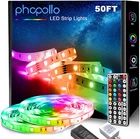 Consists of 20 static colors, 8 dynamic modes and 6 DIY colors Consists of individual 5050 LED emitters on 2 rolls of 25ft led strips Double side sticky adhesive allows for quick and easy installation in a wide variety of locations Cut the lights to your desired length Safe to touch under 12 volt working voltage; double copper layers on pcb board makes the lights stronger Product Description Size 100FT 65.6FT 65.6FT 60FT 50FT 50FT Color Multi-Color Multi-Color Multi-Color Multi-Color Multi-Color Multi-Color Control Methods Remote Control&APP Remote Control Remote Control&APP Remote Control Remote Control&APP Remote Control Power Supply Adapter Adapter Adapter Adapter Adapter Adapter Waterproof X X X X X X Cuttable ✓ ✓ ✓ ✓ ✓ ✓ PHOPOLLO LED Strip Lights - A New Way to Colorful Life Phopollo is a customer-oriented company that focuses on creating a new form of lighting experience to customers globally. As a fast-growing brand specialized in led strip lights, we are committed to provide products and service to our customers. We have integrated research, design, and production together and each strip has been strictly tested 5 times before package. Multiple Color Option Features with 20-color options, 8 lighting modes and 6-DIY colors. Easily set up your moods with these multiple options. 44-Key Remote Easily swith the color and lighting modes with this 44-key remote controller. 3M double-sided tape Peel-and-stick adhesive on the back side allows for quick installation in a wide variety of locations. Cut to length Cut the lights to desired length along cut line just using a pair of scissors. TV backlights Kitchen lights Bar lights