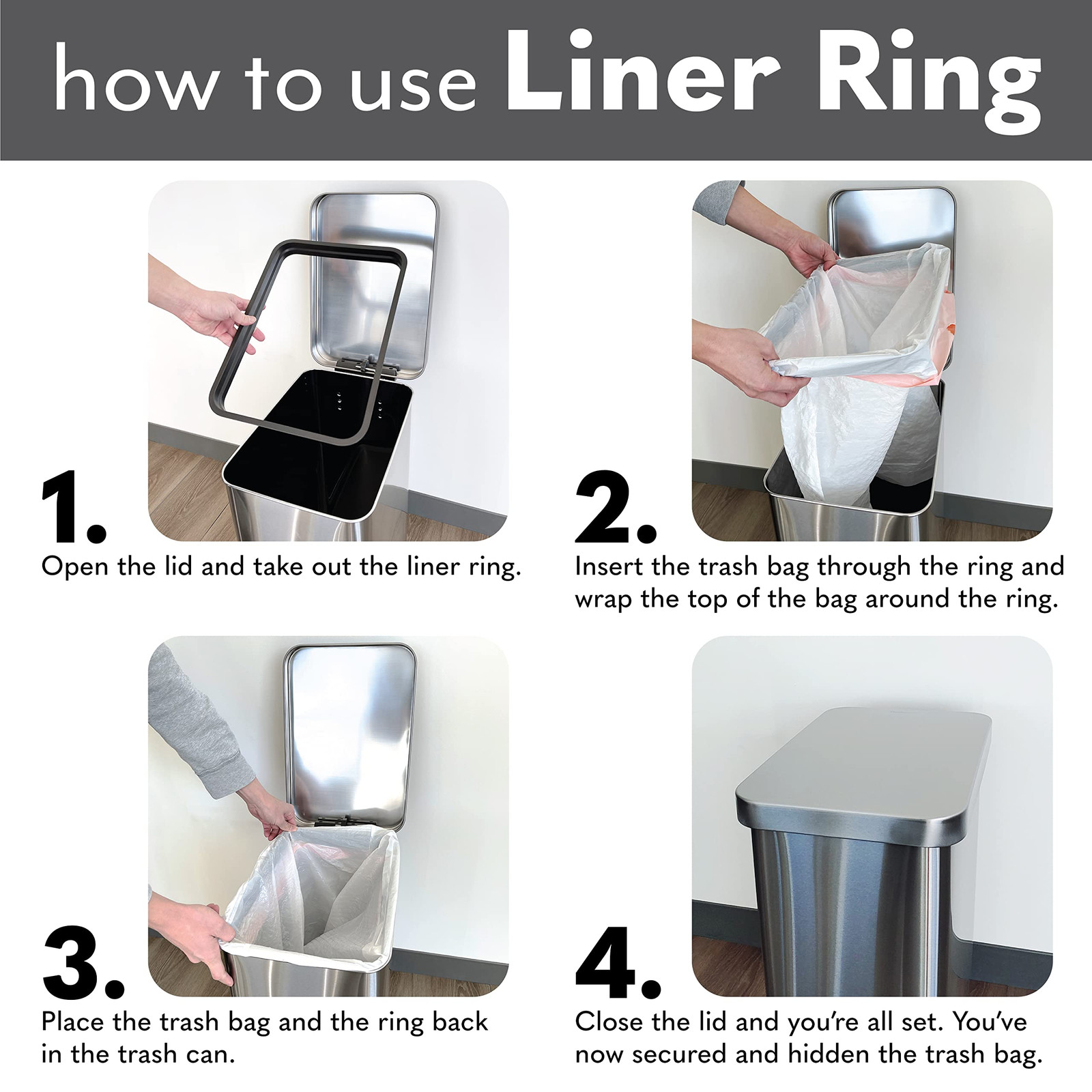 This trash can is a game-changer! The sleek stainless steel design looks stylish in any room, and the step-on mechanism is smooth and quiet. The 50L capacity is perfect for high-traffic areas, and the removable liner keeps everything tidy. Sturdy, easy to clean, and worth every pennyโhighly recommend!
