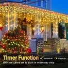 【High Specification Configuration】Outdoor Christmas lights up to 52 feet long, hanging 480 LEDs, a total of 80 drops, coupled with 11.5 feet of lead wires, equipped with low voltage plugs and multi-functional to give you a safe and convenient experience. 【Low Voltage Safety】Using low voltage and low power adapter, safe 30V working voltage and 6W low voltage output, maximize the brightness and also ensure the safety of the power supply, will not cause overheating, overload and other electrical safety issues. Give you a safe outdoor string light. 【Dustproof and Waterproof】 IP44 level of protection, can completely prevent the diameter or thickness greater than 1.0mm of foreign objects invasion and splashing water from all directions, so that the Christmas lights outdoor in storms, snow days and other environmental conditions can still play a role, but need to pay attention to not being immersed in water.Plugs should not enter water. 【Multi-function】Fairy string light have 8 light modes: Combination, Wave, Sequence, Slow Light, Flash, Slow Fade, Flashing, Normal Light. Four levels of brightness adjustment: 100%-75%-50%-25%, timed automatic shutdown, a variety of functions can be used with the one key control. 【Packaging & Quality Assured】You will get: 1x 480LED, 1x UL plug us,1x Instruction manual, any questions about the Outdoor Christmas lights Decorations,You can contact us at any time, We will provide you with a solution as soon as possible,to ensure that the quality of the product as well as the use of your experience..