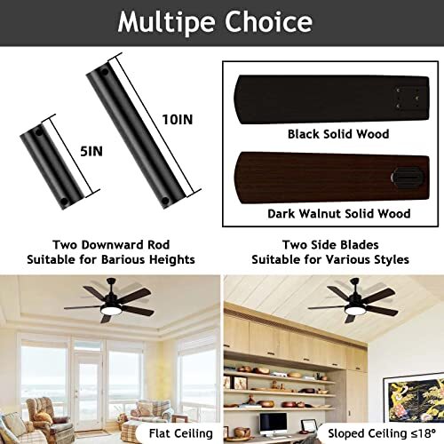 This ceiling fan is a game-changer! The sleek matte black design looks amazing indoors or outdoors, and the reversible walnut/black blades add a stylish touch. The remote control makes adjusting speed and light super convenient, and the 52-inch size provides perfect airflow. Love that it works in covered outdoor spaces too—great for patios and porches. Super quiet, easy to install, and the moisture-resistant finish is a bonus. Highly recommend!