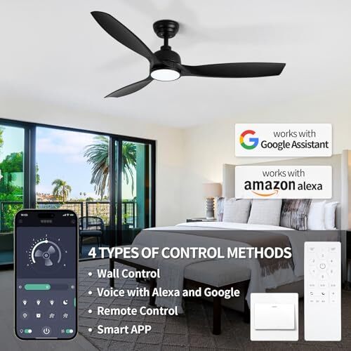 This ceiling fan is a game-changer! The sleek black design fits perfectly in any room, and the dimmable LED lights with three color temps are so versatile. Love the remote and app control—super convenient. Super quiet and powerful airflow, plus the low profile is great for smaller spaces. Easy to install, and the quality feels premium. Highly recommend!