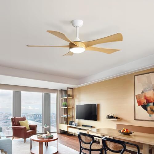 This ceiling fan is a game-changer! The sleek, low-profile design fits perfectly in my living room, and the light wood finish adds a modern farmhouse vibe. The remote control makes adjusting speed and lighting super convenient, and the DC motor runs whisper-quiet. Love that it works indoors and outdoors—perfect for my patio too. Super easy to install, and the flush mount is ideal for lower ceilings. The lights provide just the right brightness, creating a cozy atmosphere. Highly recommend for anyone wanting style and function!