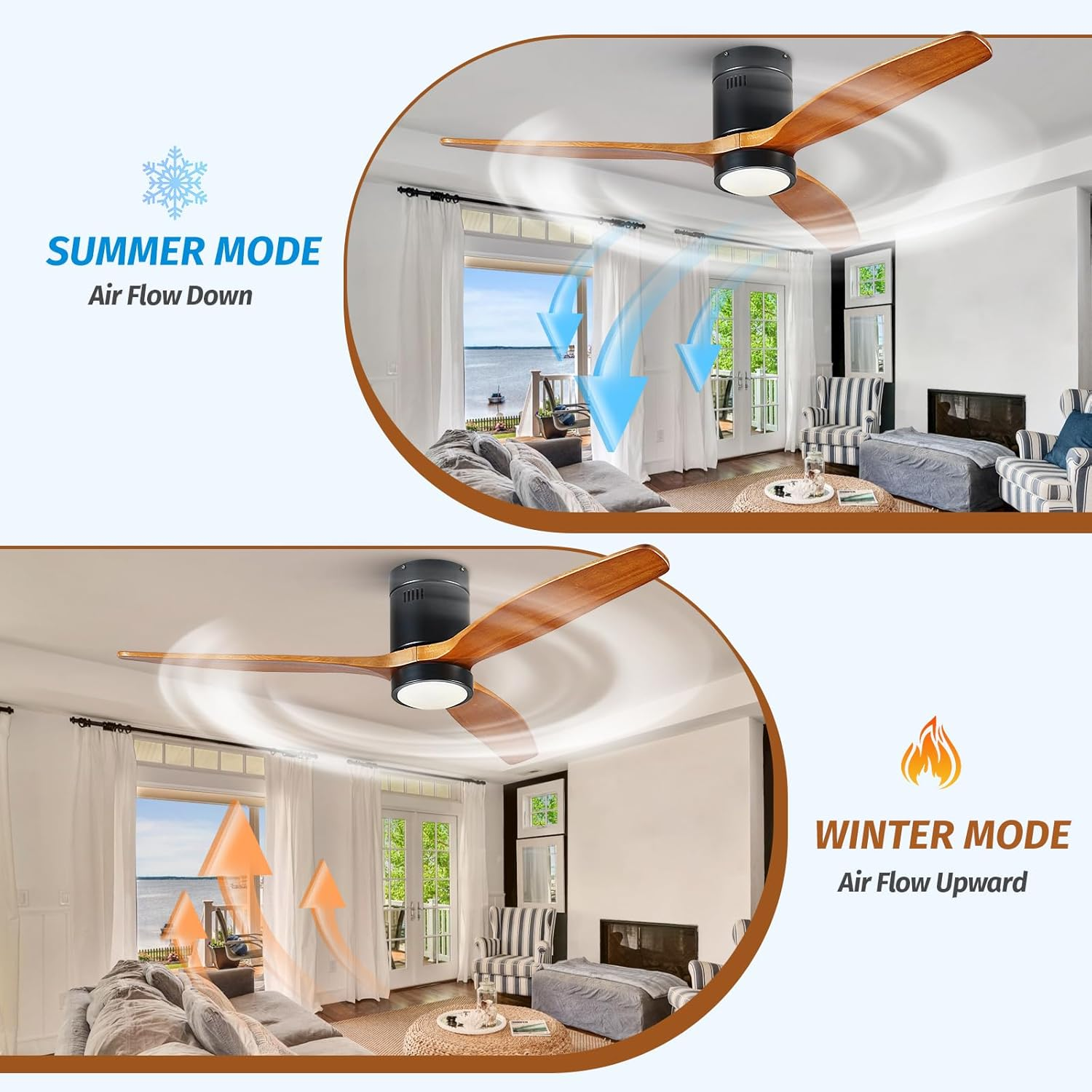 This ceiling fan is a game-changer! The sleek walnut and black design adds a modern rustic touch to any room, while the powerful yet quiet DC motor keeps the air flowing smoothly. Love the remote control with 6 speeds and 8-hour timer—super convenient. The LED light is bright yet warm, perfect for any setting. Ideal for indoor or covered outdoor spaces—highly recommend!