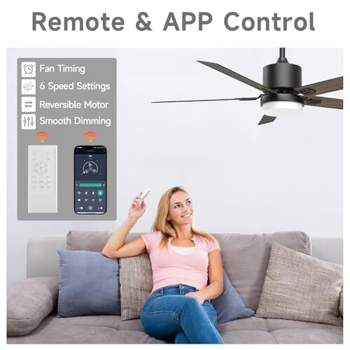 This ceiling fan is a game-changer! The sleek black and wood design looks amazing, and the dimmable LED light is perfect for setting the mood. The remote and app control make it super convenient, and the reversible DC motor keeps my room cool in summer and warm in winter. Super quiet, easy to install, and the fast shipping was a nice bonus—highly recommend!
