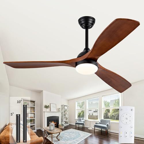 Return Policy Fast Delivery Trusted seller 52 Inch Dimmable Ceiling Fans with Lights Remote Control, 3 Blades Walnut Propeller Wood Ceiling Fans,Quiet Modern Ceiling Fan for Indoor,Outdoor,Bedroom,Living Room,Farmhouse,Patio Product Description 【3 Blades Wood Ceiling Fan】 52 Inch ceiling fan with light uses paulownia wood that has been planted for over 20 years, and the propeller ceiling fan blades are pure solid wood. It is uniquely resistant to corrosion, acid and alkali corrosion to ensure sturdy. Five wood walnut ceiling fan blade is meticulously handcrafted with a clear grain. 52 Inch ceiling fan looks finer,modern and more woodsy.To protect the wood, outdoor ceiling fan for patios is not directly to the rain. 【Dimmable Ceiling Fan with Light】All operations of the 52 Inch modern ceiling fan are controlled by remote control.24W LED dimmable ceiling fan with light (0-100%) with a choice of warm/natural/cool lighting (3000K/4500K/6000K). 6 fan speeds, 0.5/2 hour timer settings. Suitable for 110-240v voltage. 【Quiet Reversible DC Motor】This 52 Inch ceiling fan adopts solid copper wire, which has superior conductivity compared to traditional AC motors. This increases the efficiency of the motor by more than 50%, which greatly reduces energy consumption. Reversible two-way fan improves air circulation and keeps you warm in winter and cool in summer.Our DC motor is quieter than 30 dB and have a service life of over 15 years.Noiseless ceiling fan with light is sleep friendly for babies and the elderly. 【Easy Installation】Our dimmable ceiling fan with lights will be provided with 5''/10'' downrods for customers to use in different spaces such as bedroom, living room, dining room, office, farmhouse,indoor,outdoor patio and so on.Most of the fittings have been followed in advance, just need to follow the steps in the instructions for easy installation.Sloped ceilings within 10 degrees are best for installation. 【Power Off Memory Function】Use the remote control to select the ceiling fan light color and ceiling fan gear, turn off the power switch, and then turn on the power switch after 10 seconds, the light and fan will be restored to the state before the power off. More convenient to use the ceiling fan with light! 【Attentive After-sales Service】The 52 inch modern ceiling fan provides high quality after-sales service support, 2 years for the dimmable ceiling fan with light and remote. If you encounter any problem about your ceiling fan, please contact us, we will help you in time. Shipping Returns Payment Shipping Shipping is FREE to all addresses other than APO/PO boxes in the lower 48 states. All our stock ships from US-based warehouses. Shipped via USPS or UPS (depending on location and package weight) Unless stated otherwise, all orders will ship within 24-72 hours of your payment being processed. Check our feedback to see the great reviews of FAST shipping we offer. Returns Seller does not accept returns Payment We currently accept payment via eBay managed payments only. Once payment is cleared, we will dispatch your shipment within 1-3 business days. Please refer to the "Shipping" tab for more information regarding shipping speed to your destination.