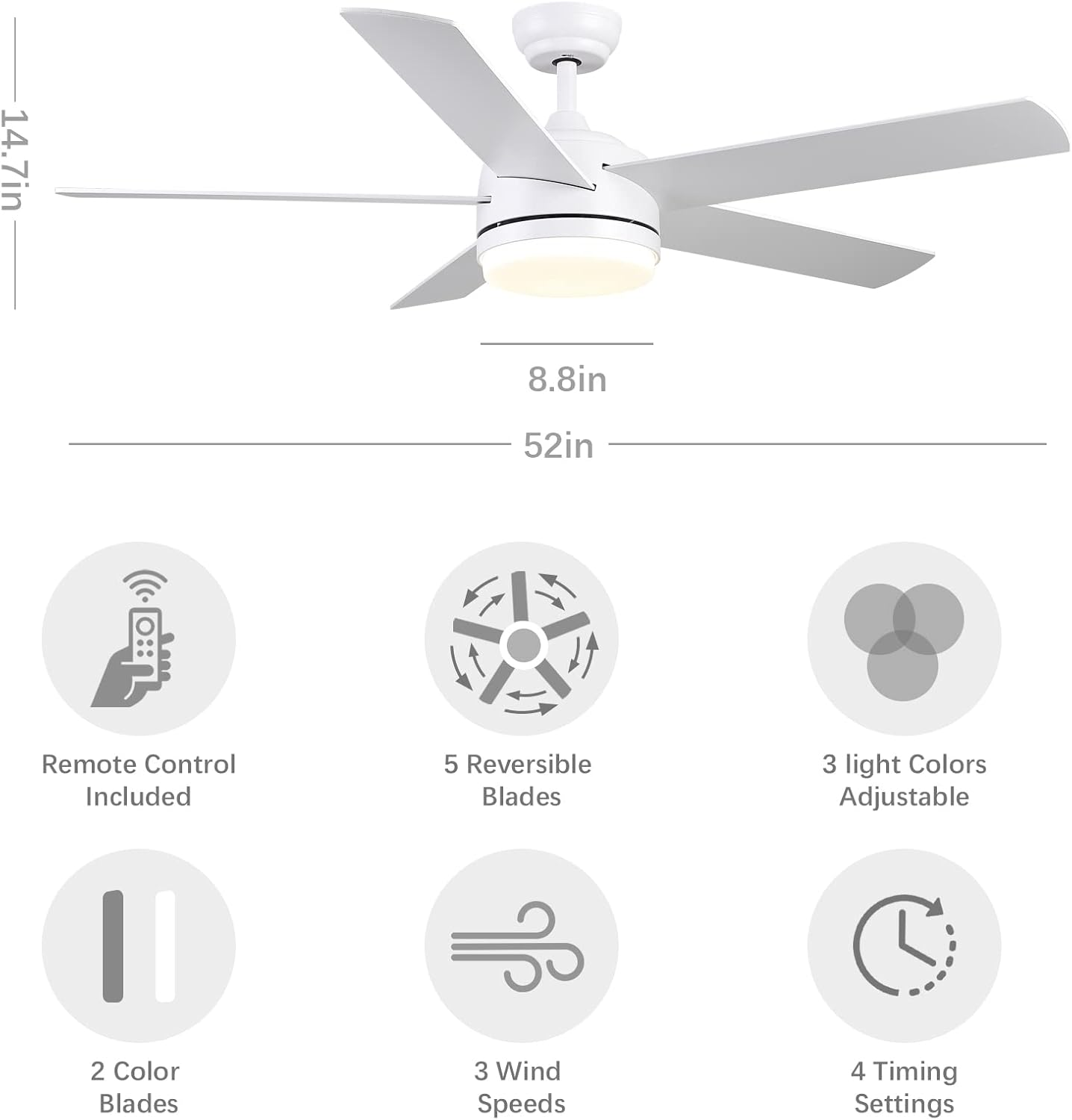 Store New Arrivals Add to Favorite View Feedback Contact Ceiling Fan with Lights, Remote Control, 52 Inch White Modern Ceiling Fan with 5 Blade Reversible Daul Finish,Room Suitable for Living Room, Bedroom, Terrace (Indoor, Outdoor). Quietness Ceiling Fan Description Light Source Type LED Style Modern Power Source AC Number of Light Sources 1 Control Method Remote Warranty Type Full Lighting Method LED Finish Types Brushed Controller Type Remote Control Unit Count 1.0 Count Room Type Bedroom Switch Type remote Material Engineered Wood, Metal Required Assembly Yes Installation Type Boom installation Additional Features Remote Control Specific Uses For Product Household Included Components Light kit inlcuded, 5 Fan Blades included, Fan motor, 1 Handheld Remote Fixture Type Non Removable Material Type Engineered Wood, Metal Light Color warm white, daylight, cool light Item Weight 19.4 Pounds Light Fixture Form Ceiling Light fixture form Ceiling Item Dimensions L x W x H 52"L x 52"W x 14.7"H Shade Color White Mounting Type Downrod Mount Color Matte White Wattage 65 watts Indoor Outdoor Usage Indoor Voltage 120 Volts (AC) Shade Material Acrylonitrile Butadiene Styrene Style Name Modern Size 48 Inch WHITE CEILING FAN : This 52 inch white ceiling fan with lights and remote control is so simple and modern .It comes with replaceable LED light which has 3 color changeable .LED light cover is made of opal glass, the blades are made of engineered Wood. Fan size is 52"x14.8".2 finishes on blade for your decor options. WHITE CEILING FAN WITH LIGHTS : Three color variable light warm white (3000K)/daylight (4000K)/coollight(6000K) can be changeable and 3-speed motor delivers different airflow to meet your demand . REVERSIBLE CEILING FAN : 5 blades rotation forward in summer and reverse in winter by shifting the reversible switch which on the side of motor manually . CEILING FAN with REMOTE CONTROL : Control ceiling fan by pressing button LOW/MED/HI to adjust fan 3 speed and control LED light by pressing LIGHT ON/OFF to adjust color temperature warm light(3000K) /natural light(4000K)/cool light(6000K) . Timer control delays your fan off in your desired way : 1/2/4/8 hours for options. CEILING FAN INSTALLATION and : for the the whole fan is 2 years . 24 hours and 7 days online for customer’s inquiry . 1-2 hour needed for installation. Product Description 52 inch white ceiling fan White quiet ceiling fan Can 3 color changing light ceiling fan DC Reversible ceiling fan Dimmable LED ceiling fan Special ceiling fan, you deserve to have Blades 5 leaves white ceiling fan with light Blades 5 leaf black ceiling fan with light Blades 3 leaves white ceiling fan with light Mounting Type Option Downrod/Sloped 15 degree Mounting Type Option Downrod/Sloped 15 degree Mounting Type Option Downrod/Sloped 15 degree ABOUT US We offer the best prices around on high quality products. Our E-store includes media such as books, movies, music and games while offering electronics, toys, sporting apparel, clothing, tools, general home, garden items and more. SHIPPING We are always working hard to ensure your package arrives as soon as possible. Please understand that some factors like weather, high postal traffic, and the performance of shipping companies are outside of our control. We offer free shipping to the lower 48 states and ship within 2 business days of payment, usually sooner. We do not accept P.O. Boxes. Please provide a physical address. For shipping outside of the continental USA, we only use eBay's Global Shipping Program.The item is shipped to KY and then sent to the rest of the world. International customers are responsible for all duties and taxes. Continue to check out in order to calculate costs for shipping the item to your country. Messages regarding eBay's Global Shipping Program MUST be directed at eBay EXCLUSIVELY. RETURNS We offer a 30-Day Return Policy on items which you are not completely satisfied with. You have the option for a full-refund or an exchange of the item. No returns are available on items shipped outside of the USA. PAYMENT We accept PayPal. CONTACT US This page content is yet to come Please ad us to your favorite seller and visit again later Thank You CUSTOMER SATISFACTION We try our very best to make sure every customer is completely satisfied. If there's a problem, message us! We're happy to help. WE ACCEPT Copyright © 2021 AutoDS. | All Rights Reserved