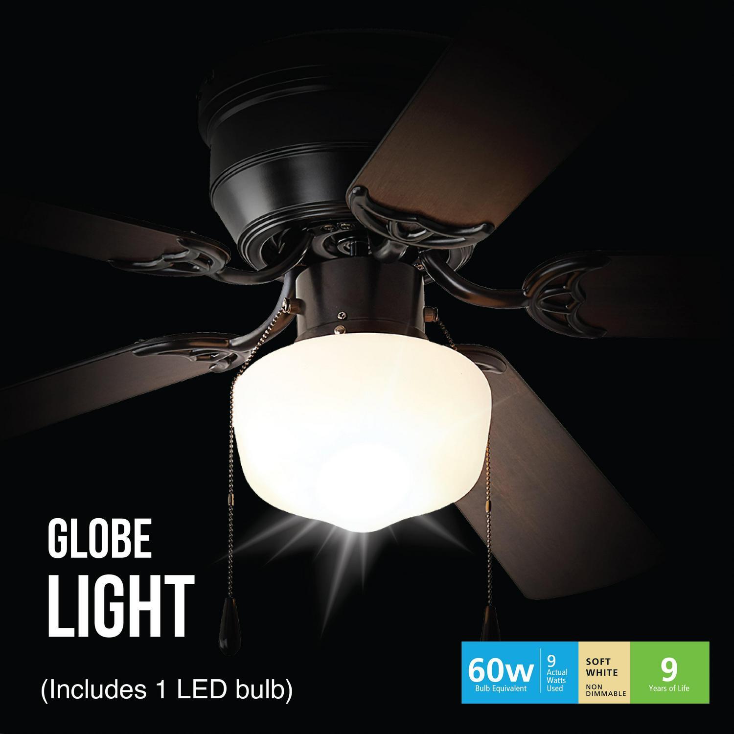 Ceiling Fan with Light Kit 52-Inch Black Hugger, 5 Blades & Reverse Airflow Indoor use Black color Update a room with this Mainstays 52" indoor ceiling Fan. Its ability to match nearly any existing setting due to its traditional style and bright finish make it the perfect addition to any room. This ceiling fan has multiple features that ensure function and versatility. Including five reversible blades and two pull switches for easy on, as well as off. Low ceilings are no problem as this ceiling fan can fit in these rooms as well. It is also easy to assemble and comes with a single light. - Indoor use - Black color - QUIET, REVERSIBLE MOTOR: Conveniently quiet, 3 speed - reversible motor for year-round comfort - 52 INCH DIAMETER PERFECT FOR SMALL& MEDIUM SIZED ROOMS: Perfect for rooms around 20 x 20 feet such as living rooms, bedrooms, dining rooms or family rooms. - FIVE REVERSIBLE FAN BLADES: Get the perfect finish match with our reversible ceiling fan blades. - LOW PROFILE DESIGN: Hugger ceiling fan, built for rooms where extra space is needed. - EASY ON AND OFF: Traditional pull chains included for easy "on and off" adjustments QUIET, REVERSIBLE MOTOR: Conveniently quiet, 3 speed - reversible motor for year-round comfort FIVE REVERSIBLE FAN BLADES: Get the perfect finish match with our reversible ceiling fan blades. LOW PROFILE DESIGN: Hugger ceiling fan, built for rooms where extra space is needed. EASY ON AND OFF: Traditional pull chains included for easy "on and off" adjustments Features: Reversible Blades, Reverse Airflow Brand: Mainstays Manufacturer Part Number: EF600W(A)-52BK Color: color 6 Model: EF600W(A)-52BK Finish: Black Assembled Product Weight: 11.68 lb Assembled Product Dimensions (L x W x H): 52.00 x 52.00 x 15.00 Inches
