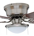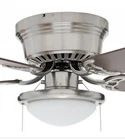 Introducing the Hugger Ceiling Fan Light, a contemporary design with warm white LED lighting and a brushed finish. Measuring 52 inches in width and length, it has five brown blades and three speeds, perfect for any indoor space. The fan features a pull chain and wall switch control and an oscillating option. It also comes with a light sensor and is energy efficient with an Energy Star rating of A. The Hugger Ceiling Fan Light is made of wood and nickel materials and has a downward light direction. Assembly is required, but the manufacturer offers a lifetime warranty. Create a comfortable and stylish atmosphere in your bedroom, living room, playroom, or dining room with the Hugger Ceiling Fan Light.