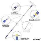 All-In-1 Window Cleaner Tool:Include 12 Inch window squeegee and 11 Inch microfiber scrubber in one unit with long handle.Natural rubber blade and special artwork of rubber provide you streak-free and squeak-free.The squeegee will effortlessly wipe away dirt and grime when combining with clean water and window cleaner.Thanks to 2-in-1 window squeegee,washing spot and wiping water,dont need to change the squeegee head. Desired for high windows, car windshield,shower glass doors Creative Swivel Design: What is the advantage of swivel design ? Not only for wide spaces, but also for narrow spaces. Press the yellow button to change the position of squeegee head,long handle squeegee enabling you to clean right up to width of the glass and the curved edge.A desired Spring cleaning tool for odd-shaped windows and narrow spaces.One outdoor window squeegee solve all window questions 53 Inch Long Sturdy Extenion Pole: Desired household window cleaning kit with 3 section of extension poles, you can adjust the length according to your needs.Easy to use Screw-on connection of pole. The stainless steel of pole is 30% studier than competitors. Not flimsy when cleaning high windows. All purpose squeegee window cleaner for auto,car windshield glass,household high window cleaning,indoor and outdoor,commercial and office cleaning Easy To Storage: Window squeegee with extension pole ,extension pole comes with rotating hook for convenient storage after finishing cleaning work. Re-usable microfiber scrubber support machine washable Easy To Storage: Window squeegee with extension pole ,extension pole comes with rotating hook for convenient storage after finishing cleaning work. Re-usable microfiber scrubber support machine washable