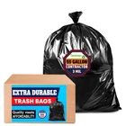 When you are dealing with big, heavy, and often pointy trash, you need contractor bags that can do the job right. You don't want to waste time doubling up torn bags! That's why our extra large garbage bags are crafted from low density resins and 3 mil thick plastic, designed to hold the toughest of loads yet flex when necessary to accommodate sticks, branches, and other long objects without punctures or tears. Fill them with jagged glass, nails, or splintered pieces of wood worry-free! With a capacity of 55 gallons, our commercial trash bags help you get the job done quickly and efficiently. Use them at the shop, in the yard, or on site - our bags make great liners for large drums and can be used free-standing, too. Proudly made in the USA and backed by our money-back lifetime guarantee. Try our bags today and experience the difference that a truly strong trash bag makes! 55 gallon capacity, our big construction bags let you get rid of more garbage with fewer bags. Boost efficiency with less trash bags to tie and dump! Perfect for the shop, the worksite, or just out back, our black bags can be used in a drum or freestanding. Puncture resistant, These 3 mil black garbage bags are resistant to tearing, so you can safely fill them with sticks or other sharp outdoor trash. Designed to stretch and fit your garbage instead of tearing and letting it all out. Crafted from low density resins, our large garbage bags are both strong and flexible. These thick outdoor trash bags can handle anything from nails to jagged broken glass to splintered framing and everything in between. Multi-use trash bags: Use them as demo bags, yard bags, or anytime you need a heavy-duty bag. Our extra-large trash bags are thick and strong, ready to haul away your heaviest loads of rough debris. These large garbage bags come individually folded, making it easy to grab one from the box when you need it. Each black bag measures 37"W x 54"H. Heavy duty capacity - These heavy duty trash bags are designed to hold more garbage and accommodate large volumes of waste, which means less bags used and fewer trips to the dumpster. Contractor bags perfect for job sites, construction, and yard waste bags. These heavy duty trash bags are designed to hold more garbage and accommodate large volumes of waste, which means less bags used and fewer trips to the dumpster. Contractor bags perfect for job sites, construction, and yard waste bags.