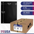 55 Galon Heavy Duty Black Trash Bags 3 MIL - 50 Count Large 36x52 IN Thick Garbage Bags - Multipurpose Trash Can Liners for Contractors, Home Kitchen & Industrial Use 50 Count - Great For Tough Cleanups: These are the large trash bags you want to use if you need a large heavy-duty bag for a tough cleanup and mess. Whether you're tackling a big kitchen mess or a major outdoor project, you will not have any issues of leaks, punctures, or holes with these trash bag, ensuring nothing will poke out. 55 Gallon Trash Bags: Extra heavy-duty contractor trashbags are a true 3 mil thick. These 3 mil thick bags are extra heavy-duty and will not rip, tear, or puncture. Black contractor garbage bags measuring 38" x 52" will fit a 55-gallon garbage can perfectly, making them ideal for substantial kitchen tasks or any large cleanup. 3 Mil Thick Puncture-Resistant: Provides excellent puncture and tear resistance. These large trash bags 55 gallon heavy duty handle heavy and sharp items for use as waste basket liners or kitchen trash bags during extensive cleanups. Bags Are Super Strong, Tough, and High Quality As They Are American-Made: These heavy duty trash bags are what you need for large cleanups in the kitchen or on the job site. You won't encounter any issues of leaks, punctures, or holes, ensuring a tidy environment. Only Makes The Strongest Bags: Specializing in creating the strongest plastic bags for your trash needs, these large kitchen trash bags uphold the quality and durability required for your toughest messes. If you are not satisfied with your purchase, please contact me.