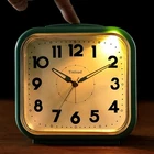 " Silent Analog Alarm Clock • Non Ticking • Gentle Wake • Beep Sounds • Increasing Volume • Battery Operated Snooze and Light Functions • Retro Green Super Large Size-- Size: " x " x ". Alarm clock stands up at an angle, high quality plastic, square face with white dial, black Arabic numerals, good decoration for tabletop, desk & shelf, bedrooms. Also large size screen and clear bold digits to display time, perfect alarm clock for elderly. Completely Silent-- Super quiet concise design alarm clock without annoying tick tock sound, ideal for those who need complete silence to fall asleep. Snooze and Light Function-- Snooze and light button locates on easy-to-find top place. Hold button down for 5 minutes snooze or to light up the clock face on demand to see the dial momentarily in the darkness. Gentle Wake Increasing Volume-- Classic beep alarm sounds, designed to ascending four stages for gentle wake at first, then ascend in volume with more and more hurried sounds, which last for nearly 1 hour or stop/suspend when alarm is turned off or snooze bar is depressed. Battery Powered-- Runs on 1 "AA" Battery (not included ). 1* alarm clock 1* User manual