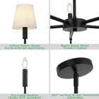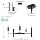 Return Policy Fast Delivery Trusted seller 5-Light Black Chandelier Light, 28 Inch Height Adjustable Pendant Lamp, Farmhouse Industrial for Sloped Vaulted Ceilings, Hanging Lighting Fixture for Foyer Kitchen Dining Room(Just Light, No Shade) Product Description To Each Their Own: With or Without Shades? If you would prefer to have the lamp shades, spend a little more and order them with a separate package from us. Adjustable Heights: The chandelier pendant light fixture has 4 pieces detachable central poles(12 inches x 3 and 6 inches x 1). They can be easily combined into different custom heights. No matter how your ceilings vary(flat/sloped/vaulted), they have good flexibility to set at a perfect height. E12 Sockets: The 5-light farmhouse chandelier uses E12 bulbs(NOT included), 40 Watts Max each. The pendant fixture will light up your space like a stunning star. They are also compatible with dimmable switches and dimmable bulbs. Easy Installation: You can easily install this chandelier pendant like a breeze. The main lamp body is semi-assembled without re-connecting each light by yourself. Just follow the detailed user manual included in package. Versatile Usage: The black chandelier light with/without white linen shades creates an elegant atmosp to your dining room, living room, entryway, bedroom, kitchen and foyer. Shipping Returns Payment Shipping Shipping is FREE to all addresses other than APO/PO boxes in the lower 48 states. All our stock ships from US-based warehouses. Shipped via USPS or UPS (depending on location and package weight) Unless stated otherwise, all orders will ship within 24-72 hours of your payment being processed. Check our feedback to see the great reviews of FAST shipping we offer. Returns Seller does not accept returns Payment We currently accept payment via eBay managed payments only. Once payment is cleared, we will dispatch your shipment within 1-3 business days. Please refer to the "Shipping" tab for more information regarding shipping speed to your destination.